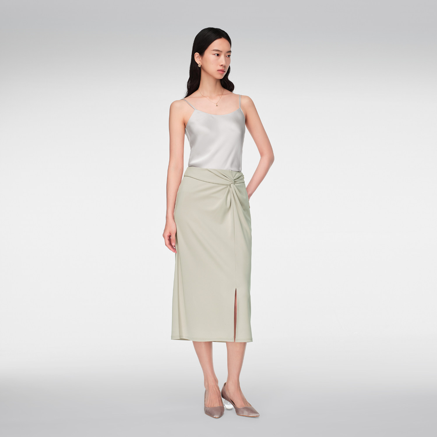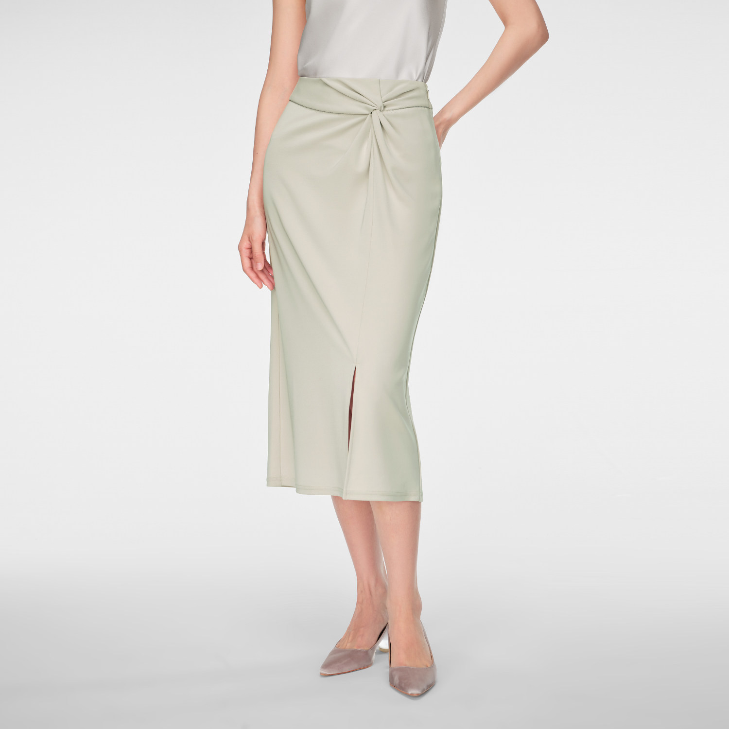 OVV春夏热卖女装时尚扭结装饰中长款休闲舒适半身裙