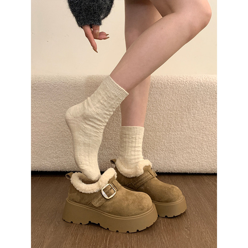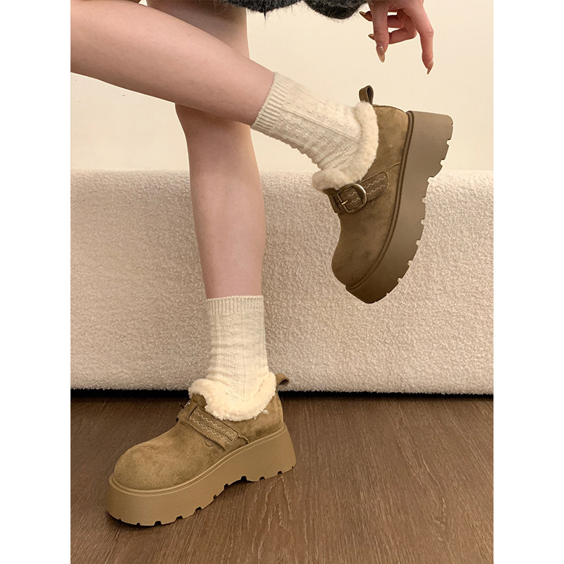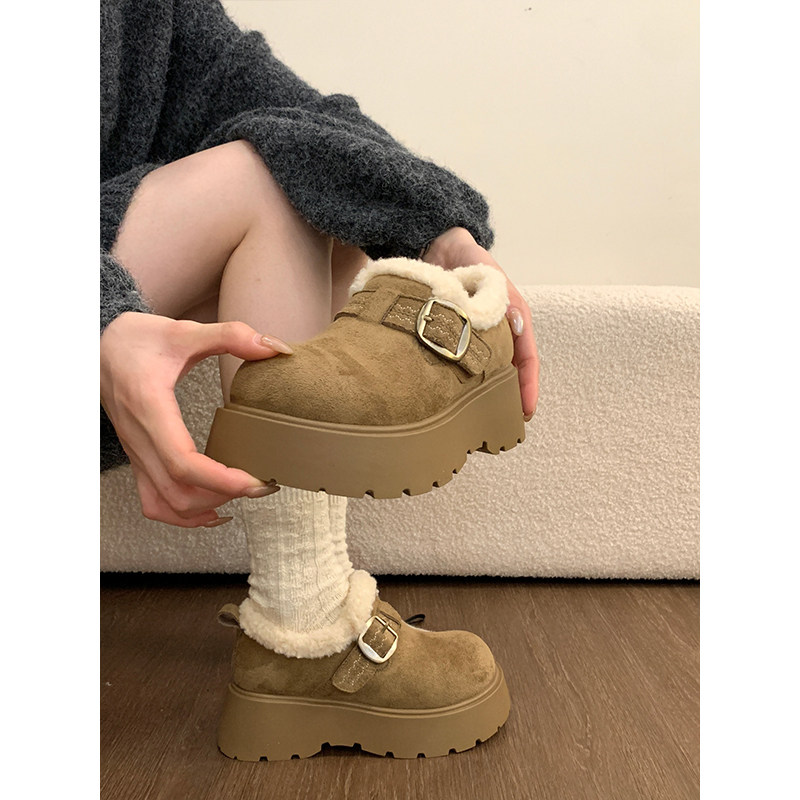 厚底增高加绒豆豆勃肯鞋女2025冬季新款毛毛棉鞋子外穿保暖雪地靴