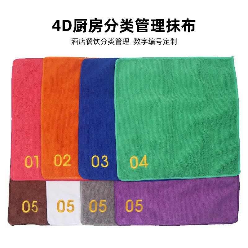 依美洁4D酒店厨房管理专用毛巾餐厅饭店保洁刺绣数字分类使用抹布
