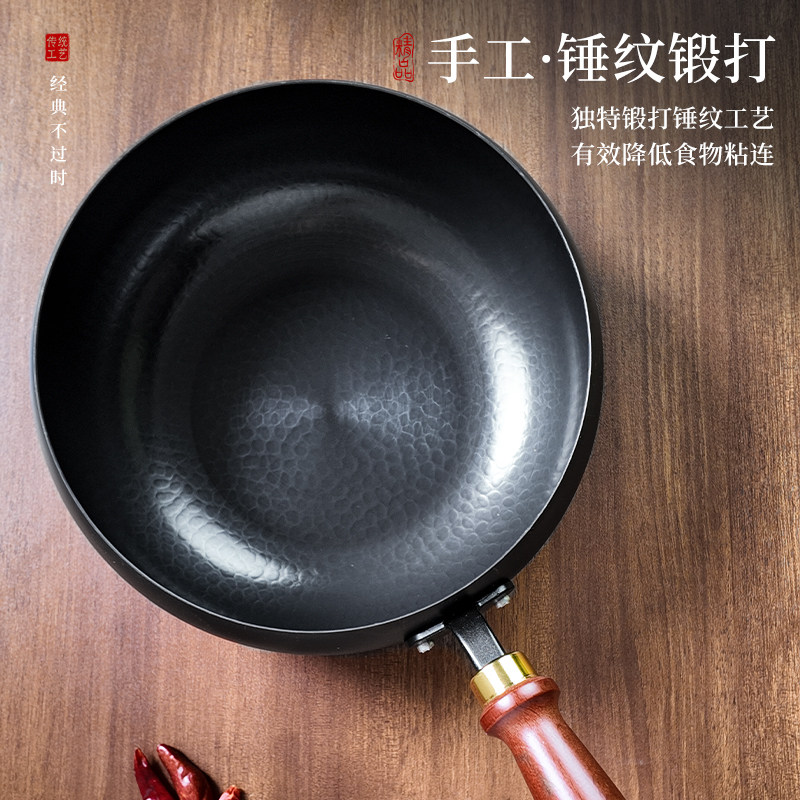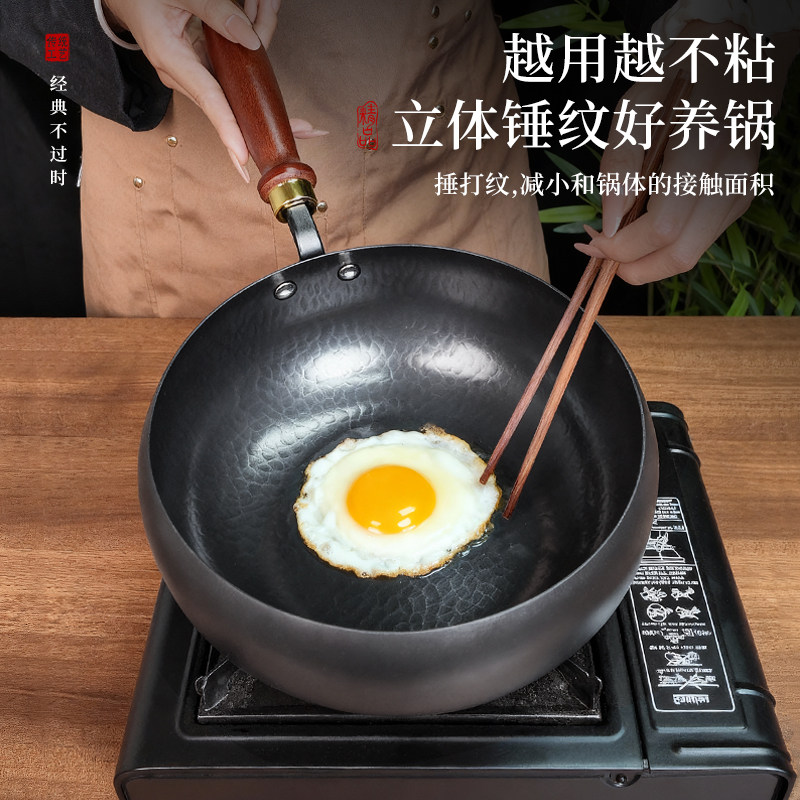 古法大肚锅炒锅章丘锤纹家用铁锅不粘锅平底小炒锅加厚旗舰店涂层