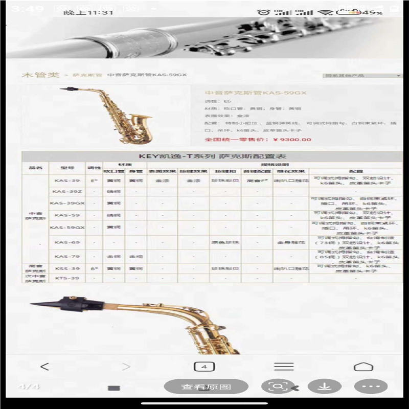 【汇生】KEY凯逸 中音萨克斯管KAS-59GX【议价】