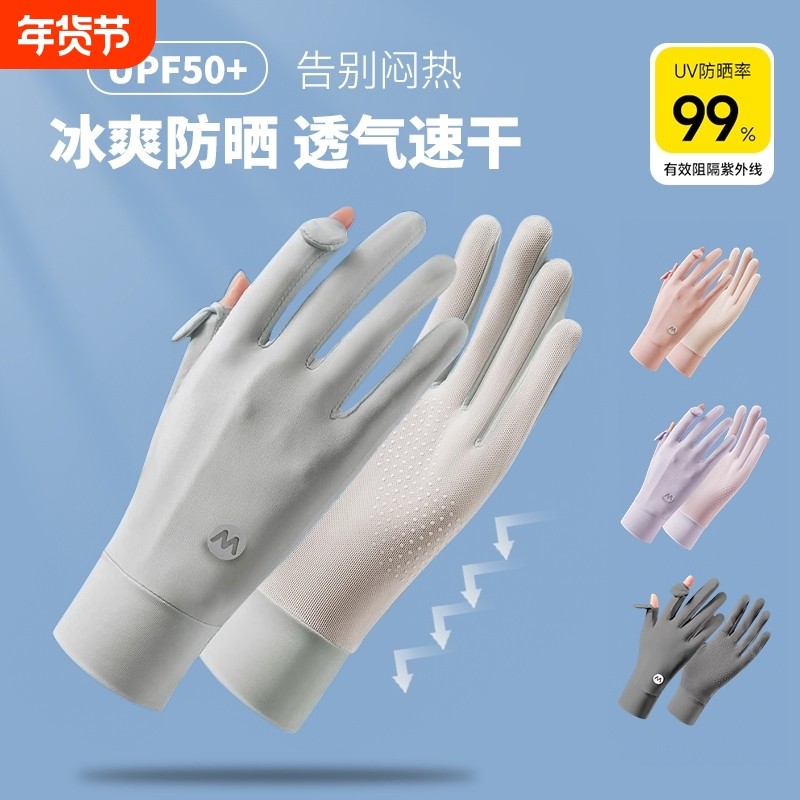 冰丝防晒手套女夏季薄款防紫外线开车骑行电动车用防滑袖套可触屏