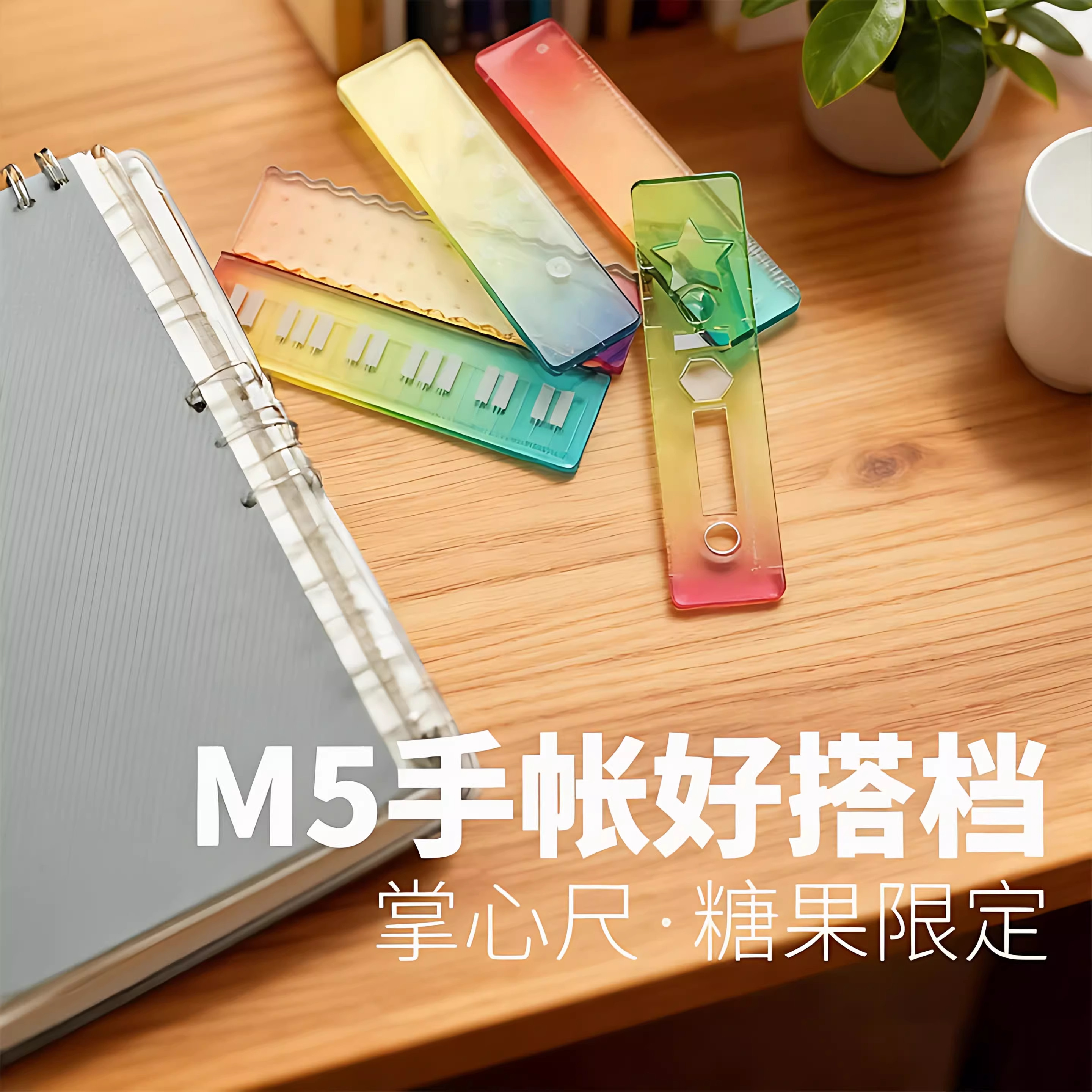 称心如意尺掌心尺糖果色手帐本迷你刻度尺透明波浪彩色小巧直尺子