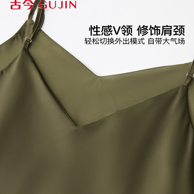 金三塔真丝睡裙丝滑100%桑蚕丝性感吊带裙睡衣女简约纯色家居服