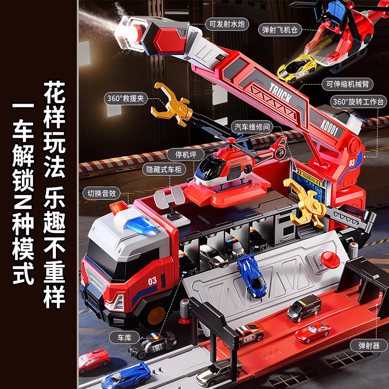 多功能救援消防车儿童玩具大号合金小汽车喷水弹射轨道益智3男孩6