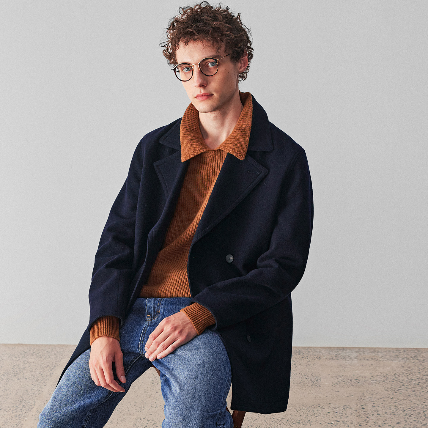 柏品高克重纯羊毛海军大衣男2025冬新商务休闲美利奴短款毛呢外套