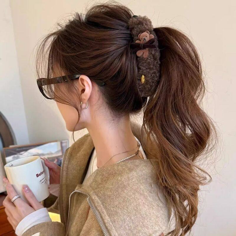 香蕉夹竖夹韩系可爱小熊ins风高马尾发夹女高级感温柔后脑勺抓夹