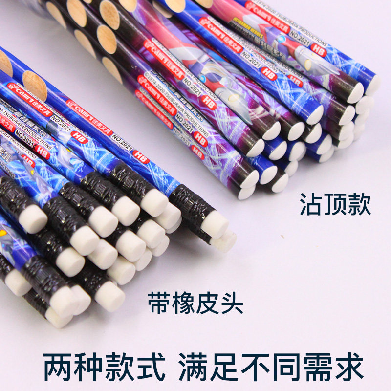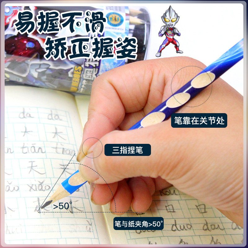 奥特曼洞洞铅笔一二年级小学生用带橡皮擦头男孩三角杆hb矫正握姿