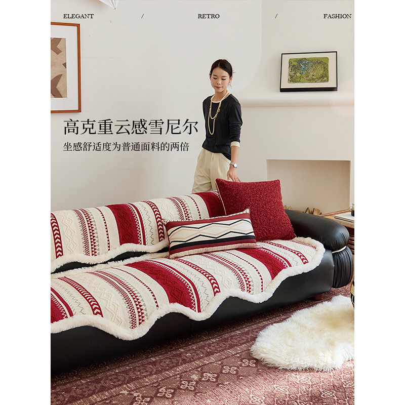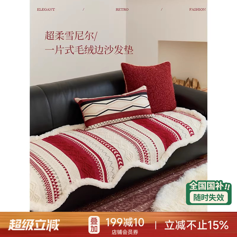 【国补再减15%】蜡笔派暖迹异形沙发垫红色节日简约现代防猫抓