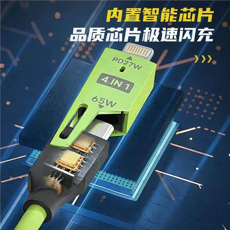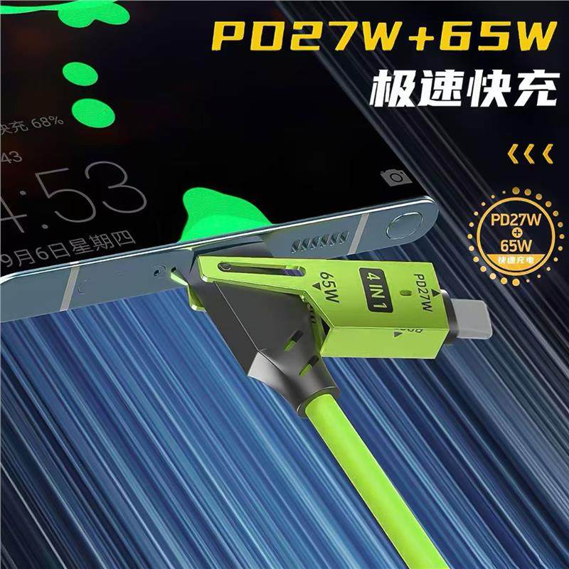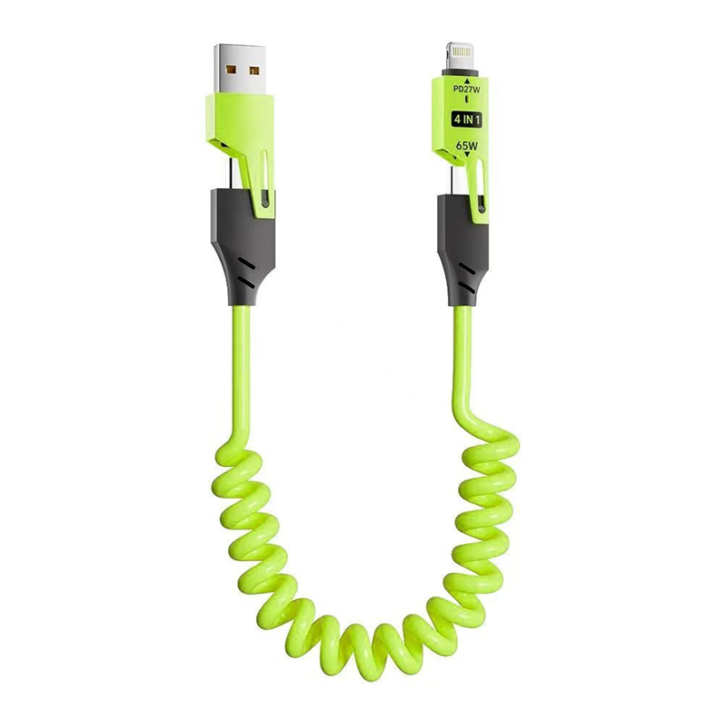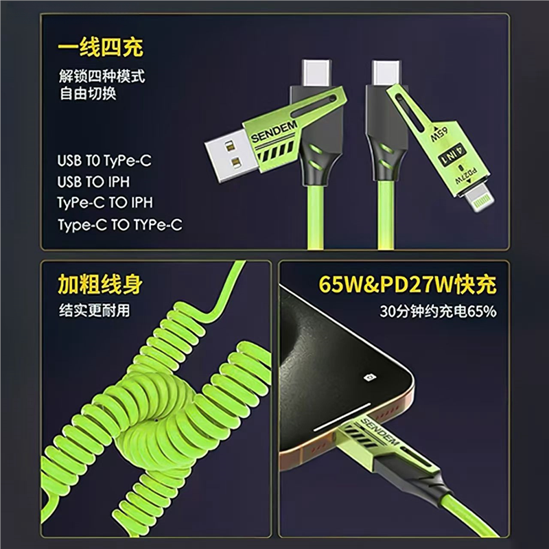 四合一弹簧伸缩数据线车载carplay超级快充适用于苹果华为oppo荣耀多功能iphone16充电器线65w数据传输