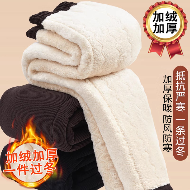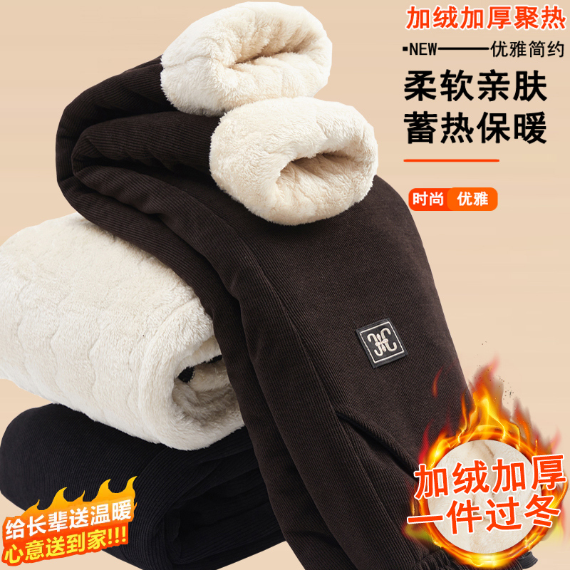 妈妈冬季加绒加厚裤子中老年人女裤奶奶高腰棉裤外穿老太太保暖裤