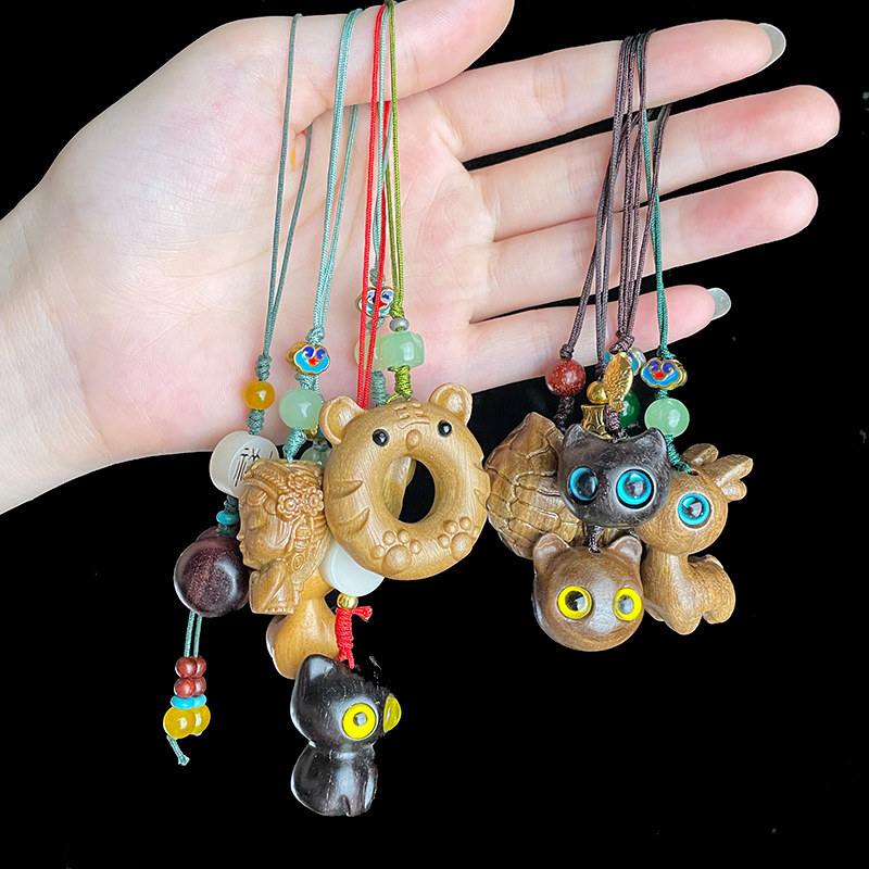 可爱动物吊坠DIY钥匙扣手机链书包挂件夜光饰品挂饰紫檀檀香木