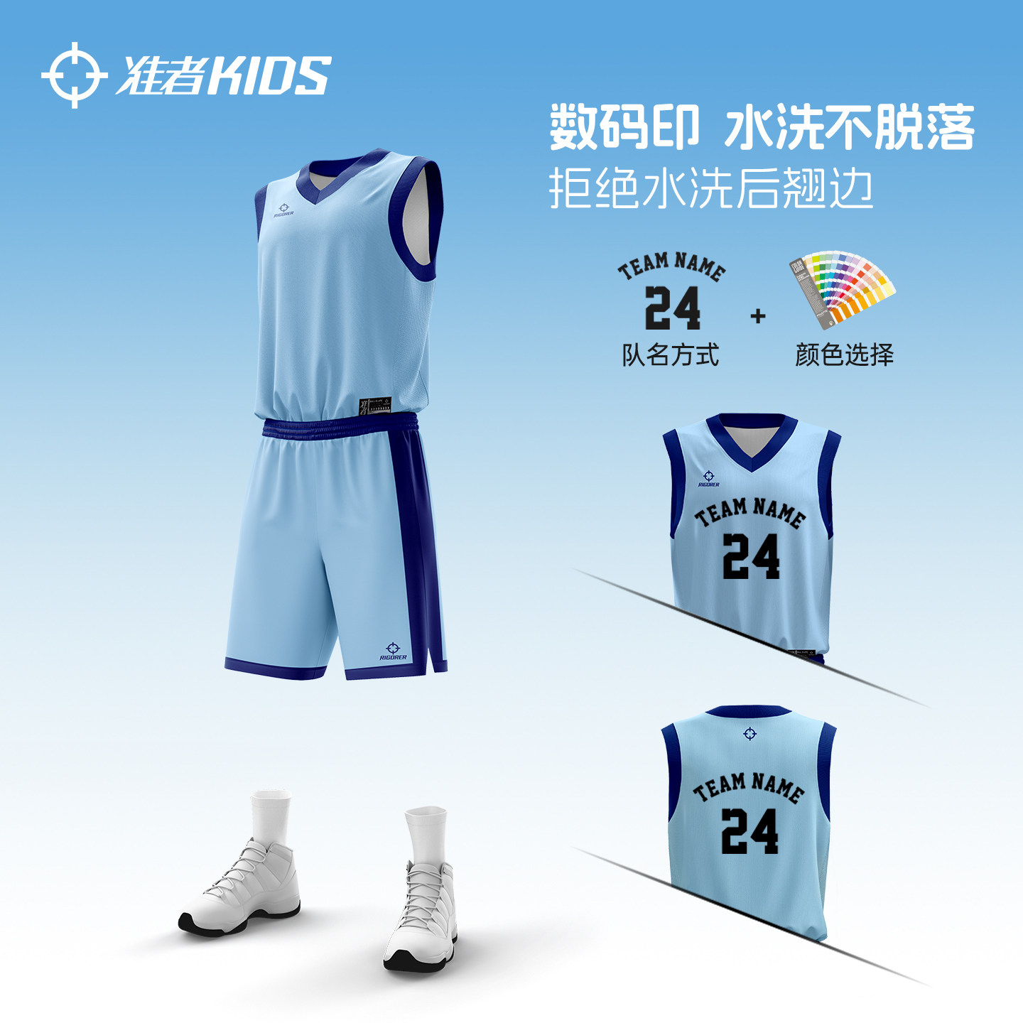准者儿童篮球服定制球衣数码印团体比赛训练套装团购青少年运动服