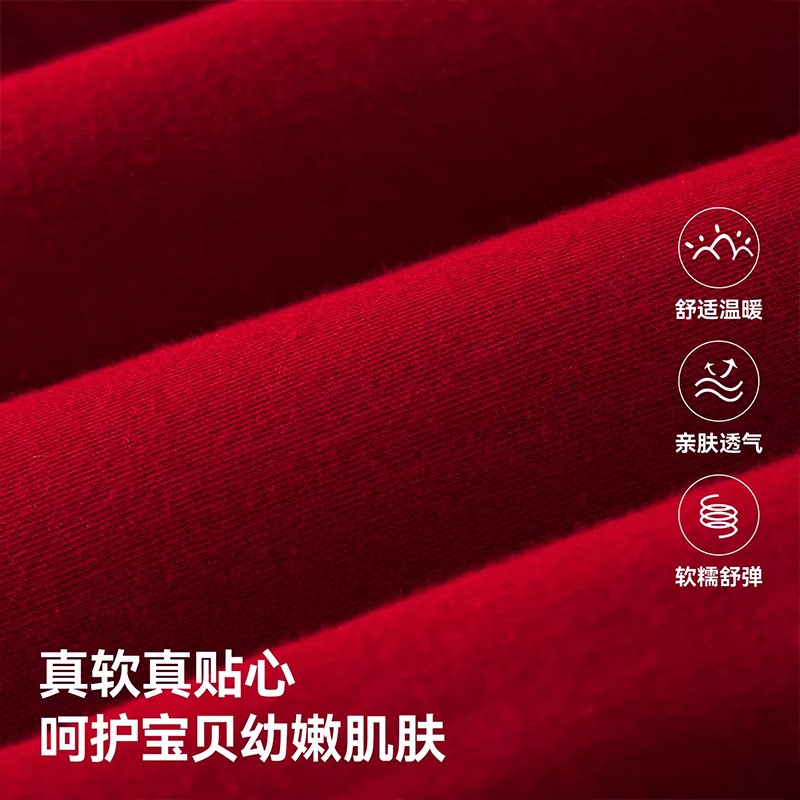 新年贝肽斯婴儿夹棉连体衣冬装加厚外出服红色满月宝宝拜年衣服S