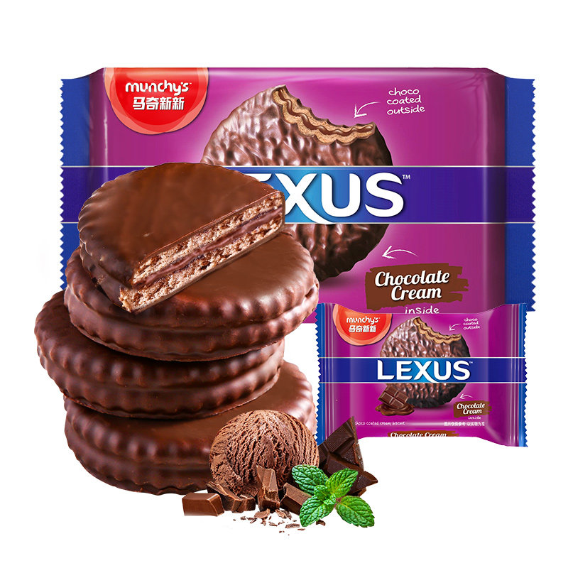 马奇新新岩盐巧克力涂层夹心饼干休闲零食柠檬黄油味马来西亚进口