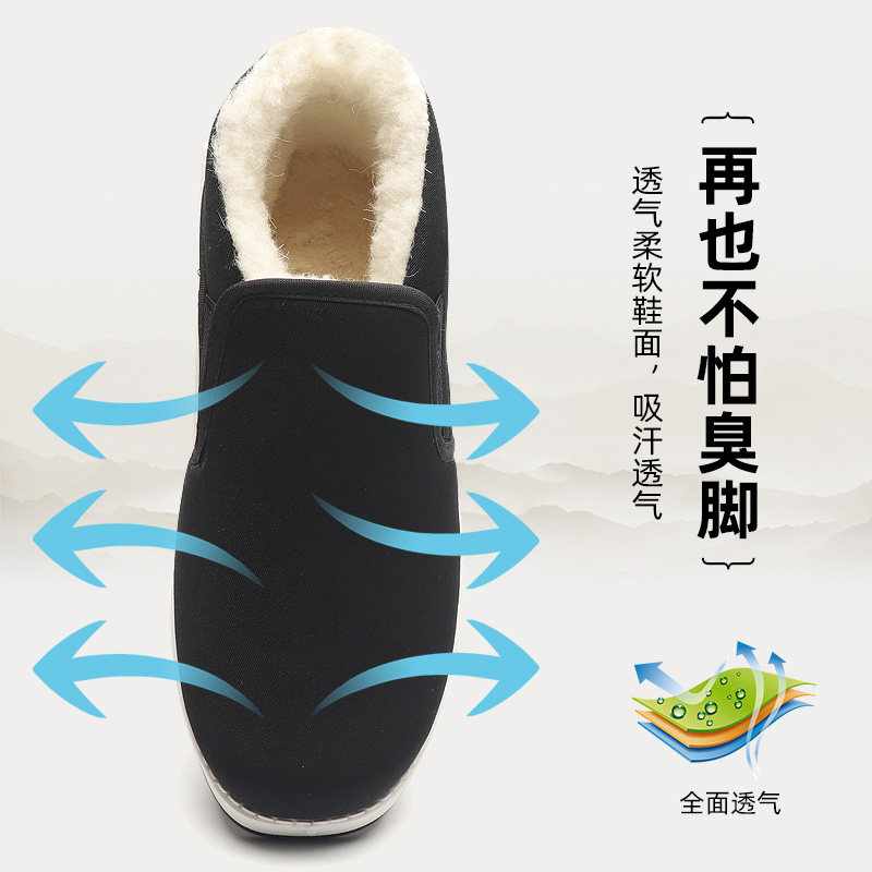 冬季老北京布鞋高帮加绒加厚防滑中老年防寒保暖工作羊毛棉鞋男款