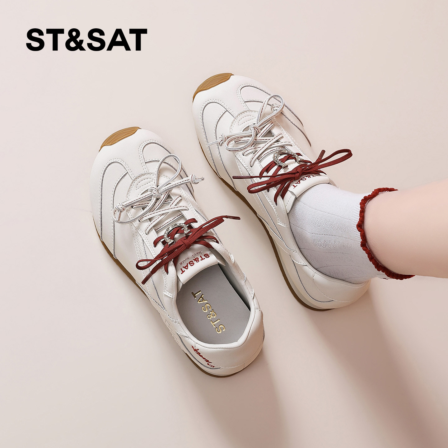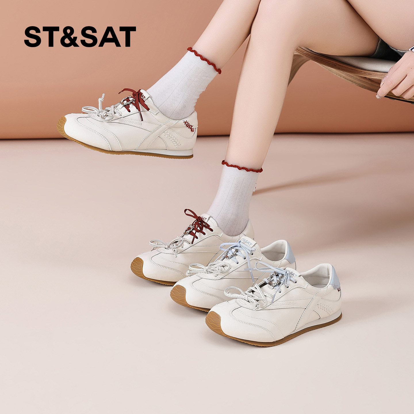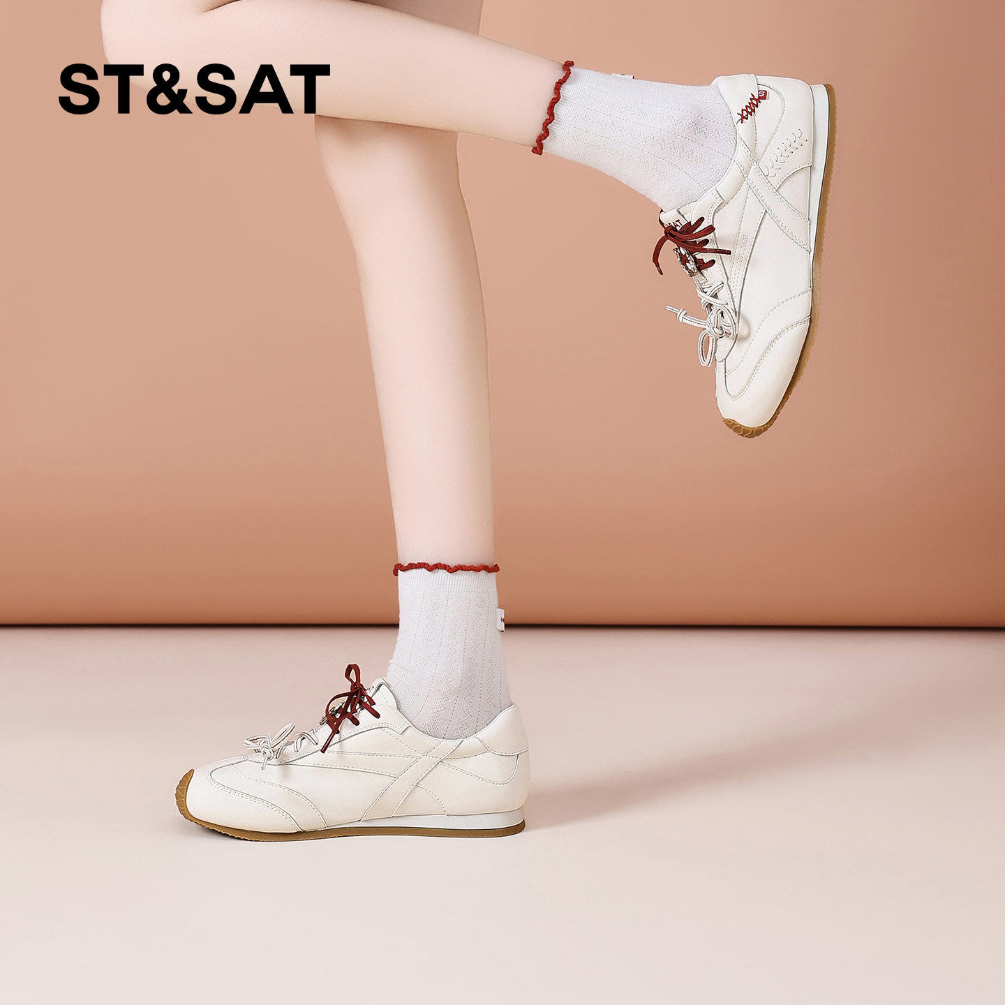 星期六软底德训鞋女复古2026春季新款双鞋带百搭运动休闲鞋小白鞋