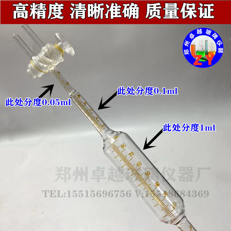 氧气量管1941/1942 气体取样量管100ml氢气测定气体分析仪配件