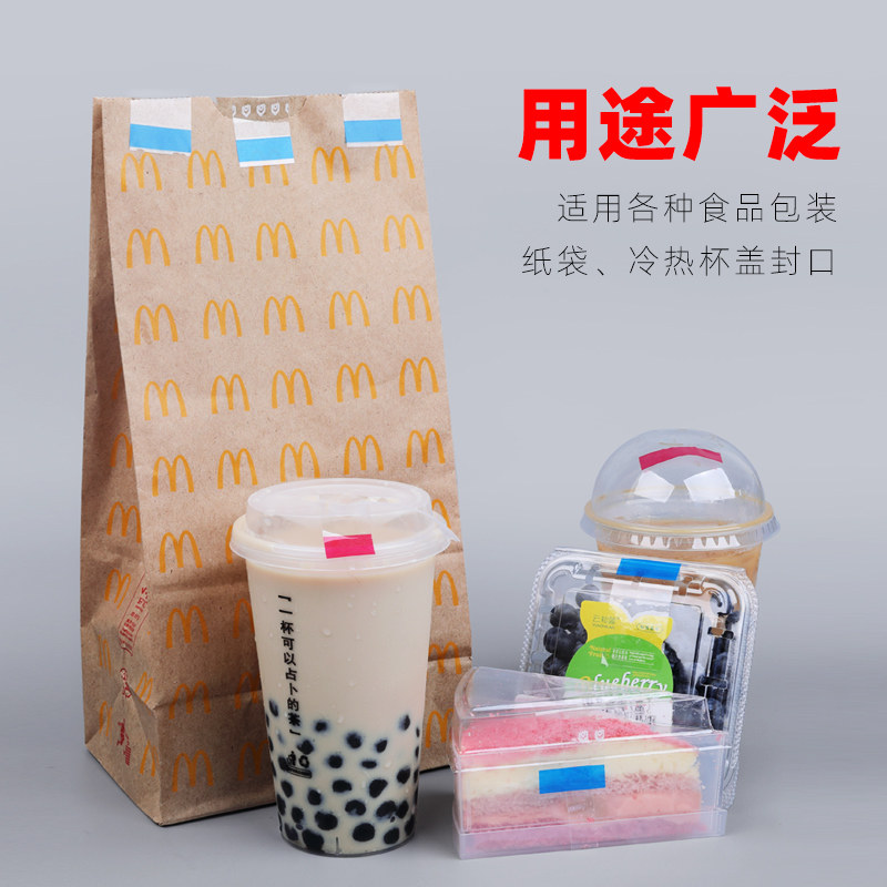 5卷易撕贴封口贴咖啡杯奶茶店饮料品球型盖子防漏打食品烘培三明治包装家用密封标签贴纸底座点断式分片胶带