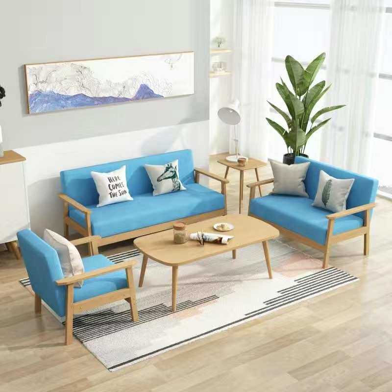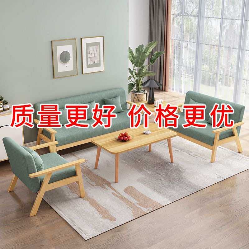 实木沙发茶几组合现代简约布艺三人办公桌椅套装客厅小户型出租p^