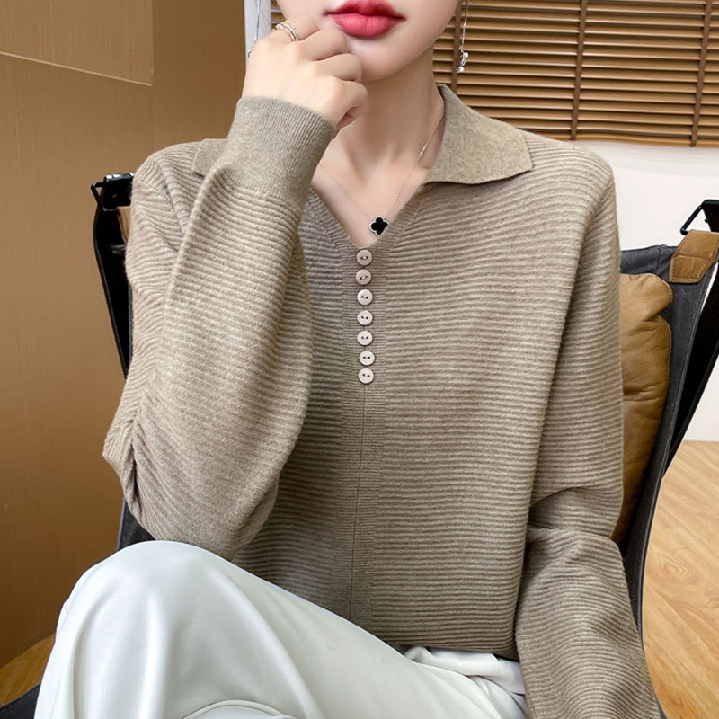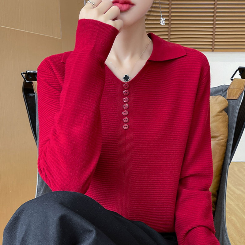 撤柜撤标(A)翻领针织打底衫女春秋流行内搭上衣洋气大码女装毛衣