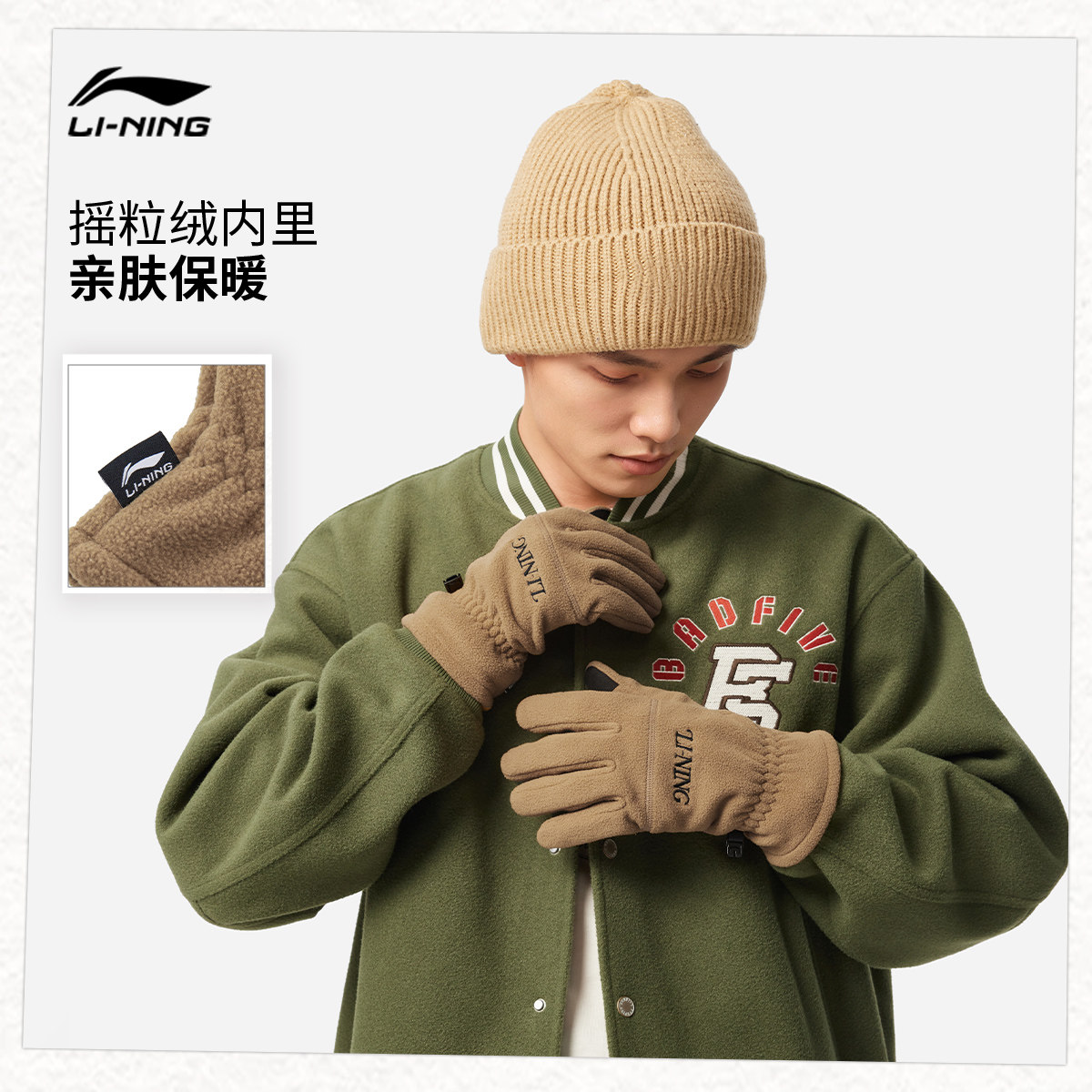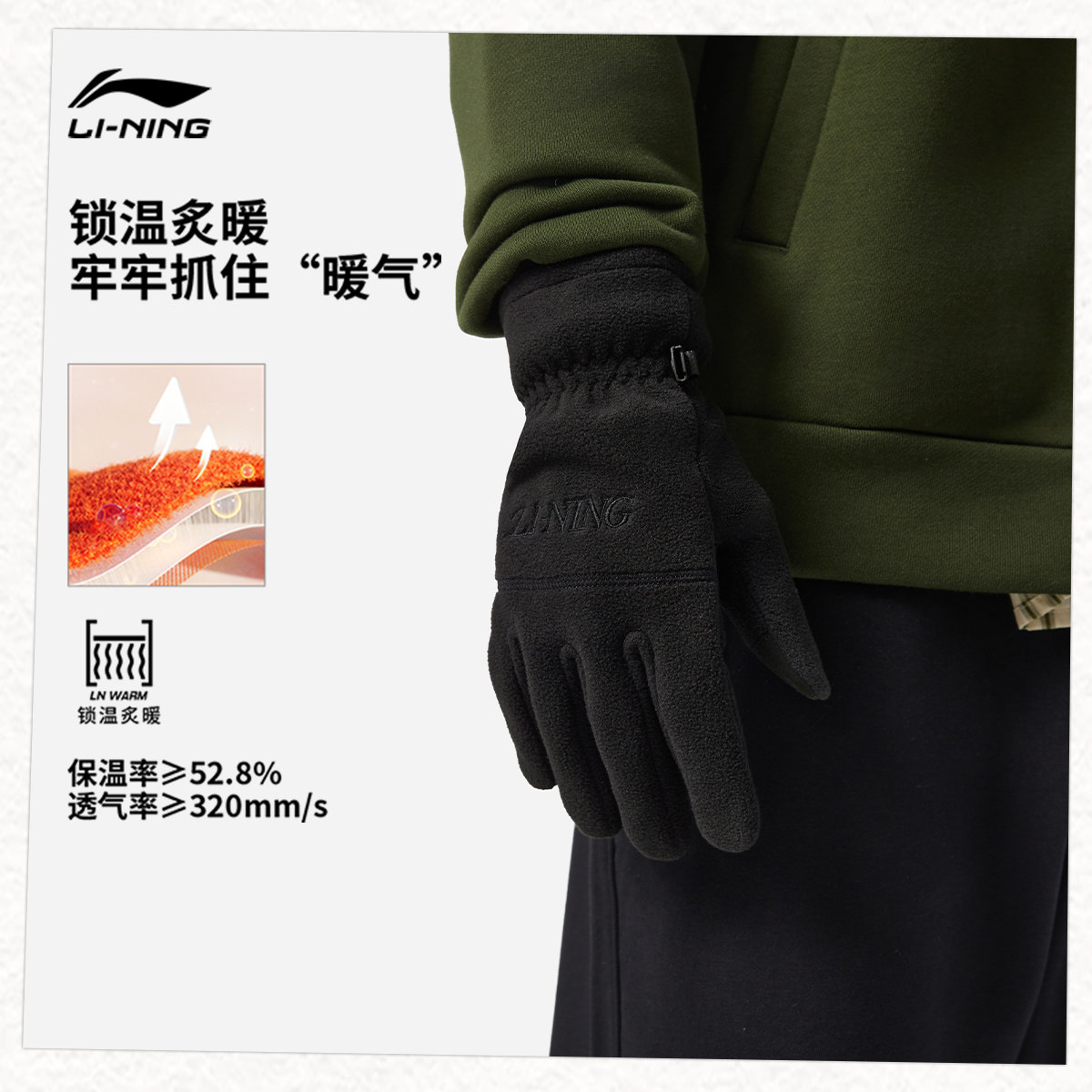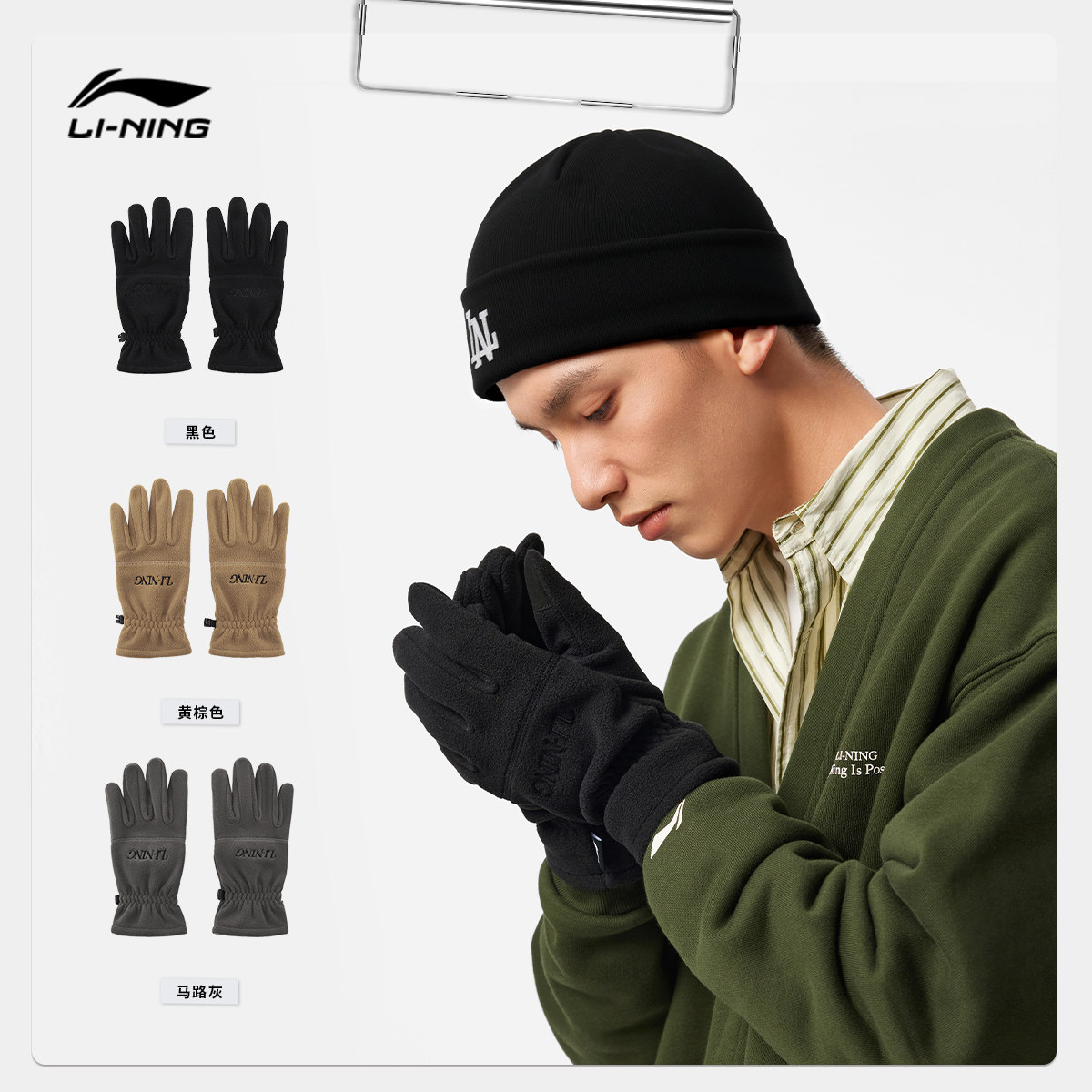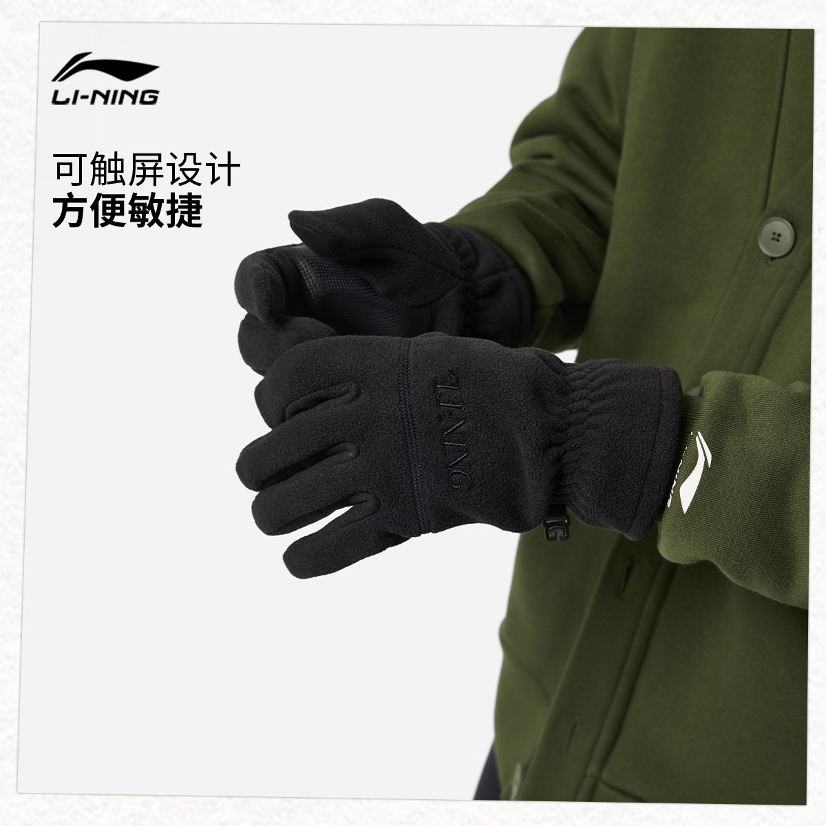 李宁加绒手套 暖冬篮球跑步飞盘滑雪运动户外加厚套装触摸男女款
