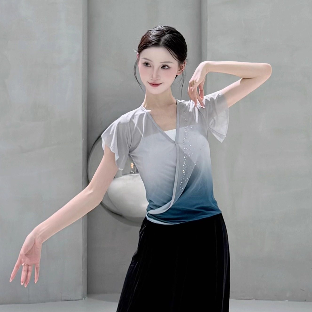 秋冬现代舞蹈练功服上衣古典舞专业形体训练飘逸长袖服装女艺考