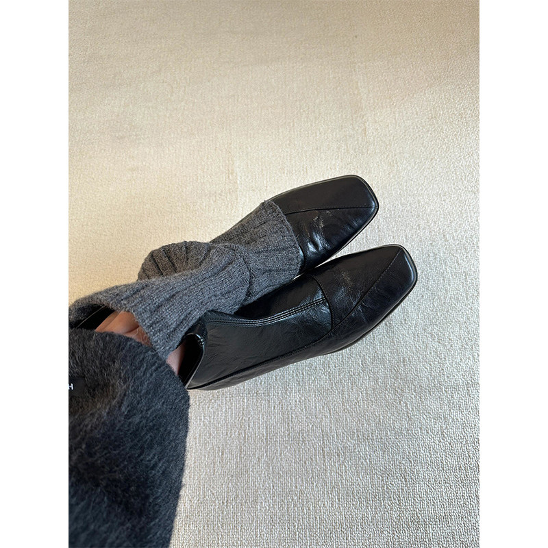 牛皮版~弹力瘦瘦靴女方头显瘦气质短靴粗跟小裸靴冬季黑色防水台