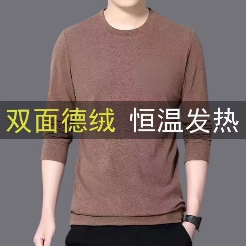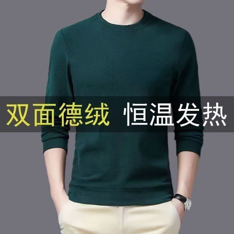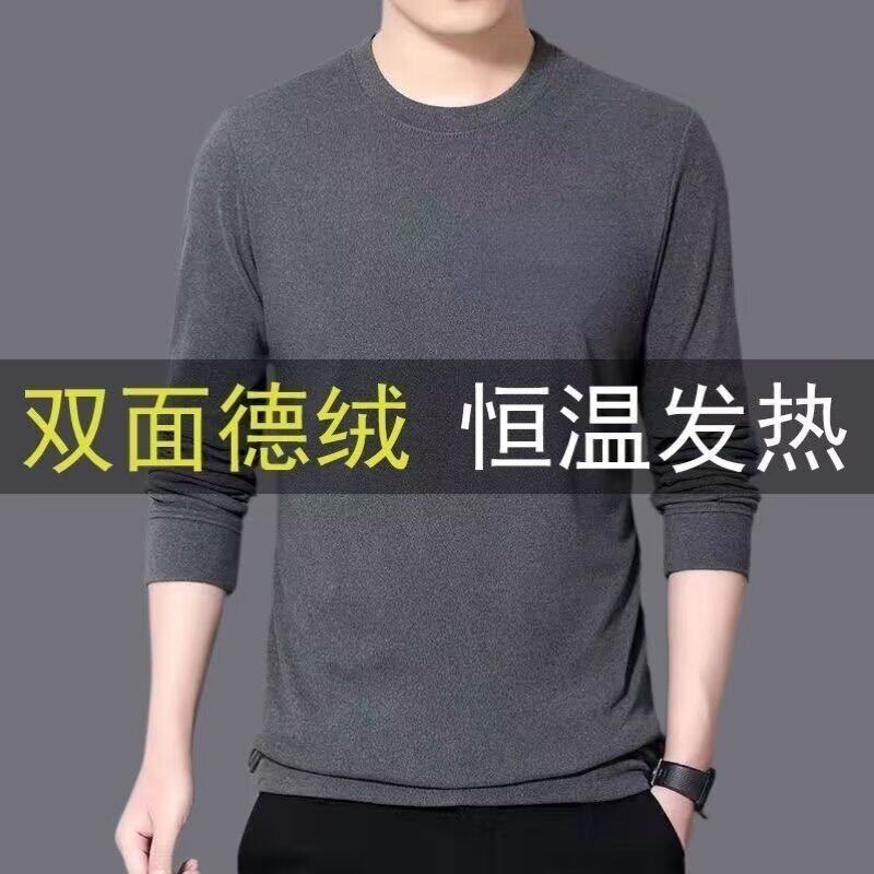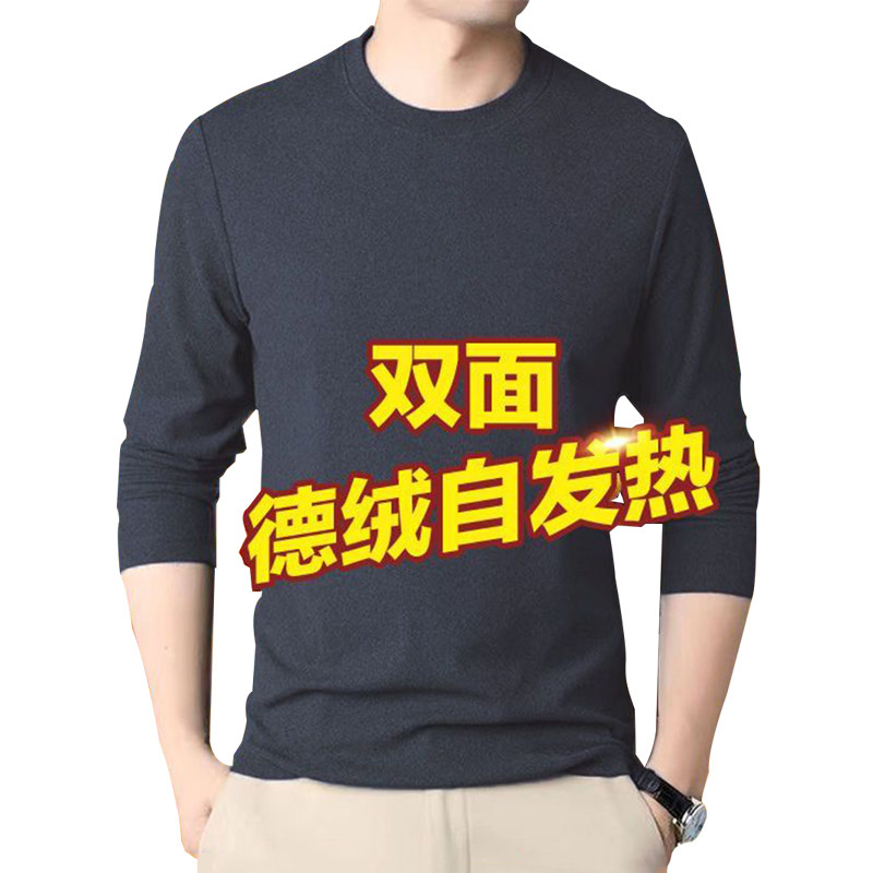 双面德绒圆领纯色打底衫秋冬季男士长袖T恤内搭体恤发热保暖秋衣