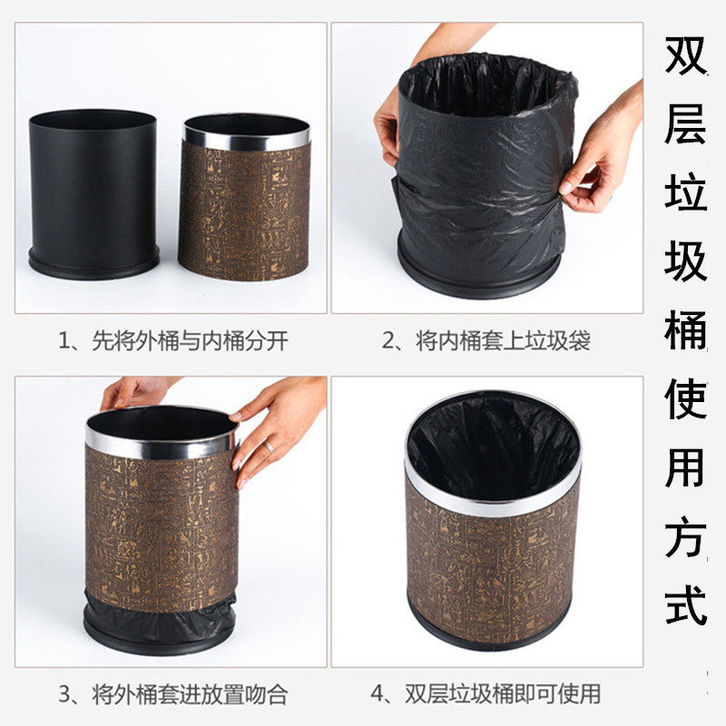 酒店客房垃圾桶宾馆KTV卫生间防水纸篓台球厅双层阻燃桶圆形批发