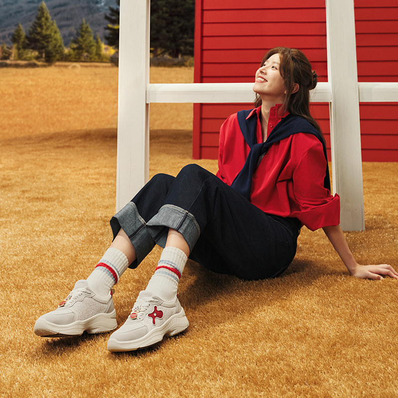 【直播特惠清仓】红蜻蜓运动休闲老爹鞋女潮厚底板鞋单鞋小白鞋女