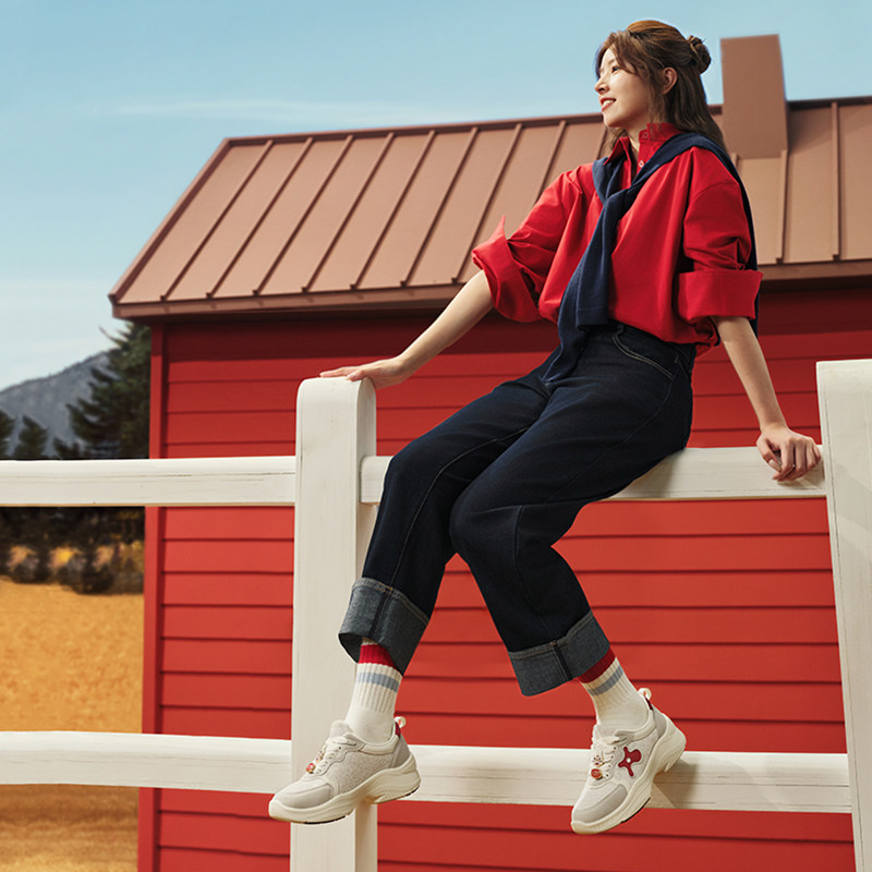 赵丽颖同款73hours女鞋小熊玩偶春秋新款厚底鞋透气小白鞋休闲鞋
