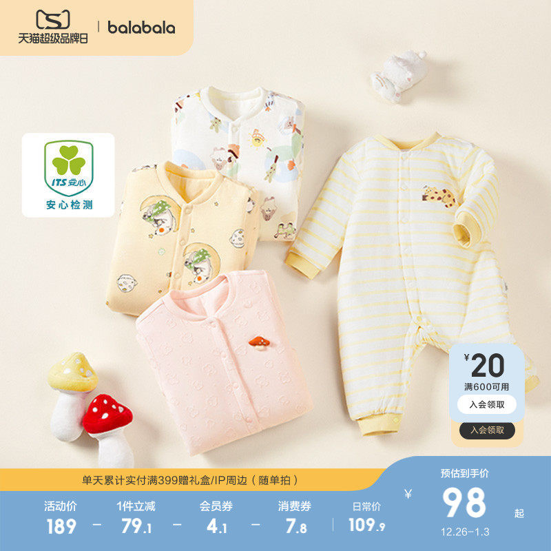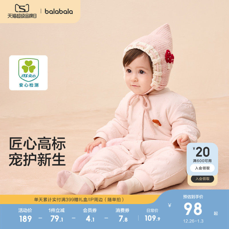 巴拉巴拉童装婴儿连体衣新生儿宝宝衣服夹棉衣服冬装哈衣爬服加厚
