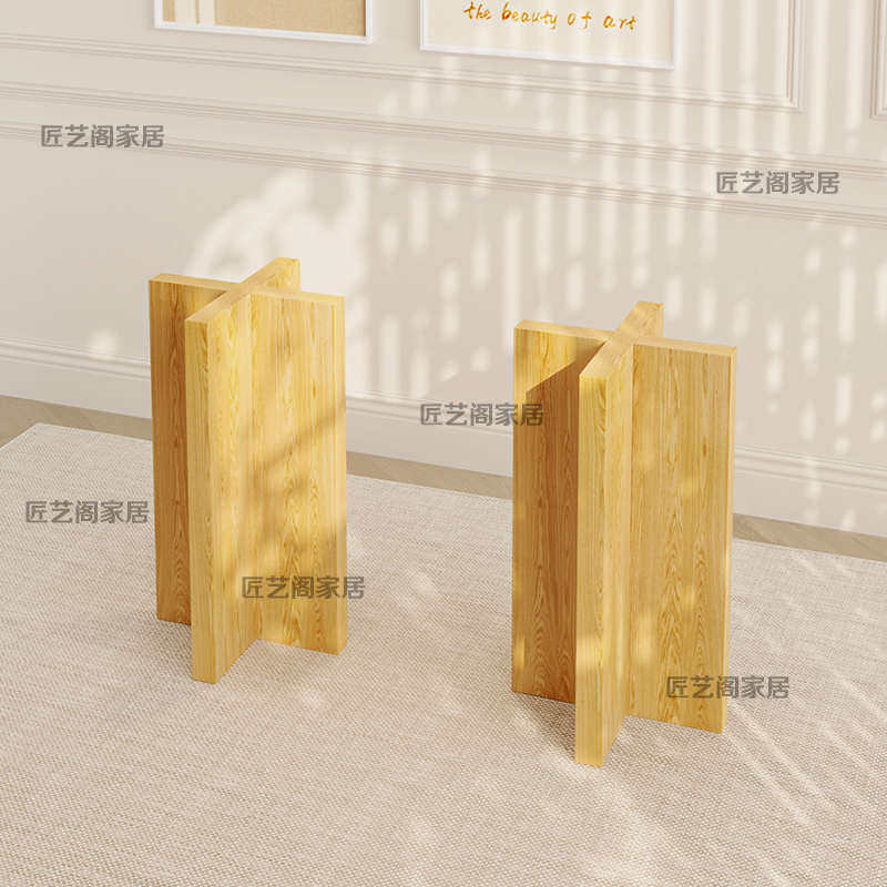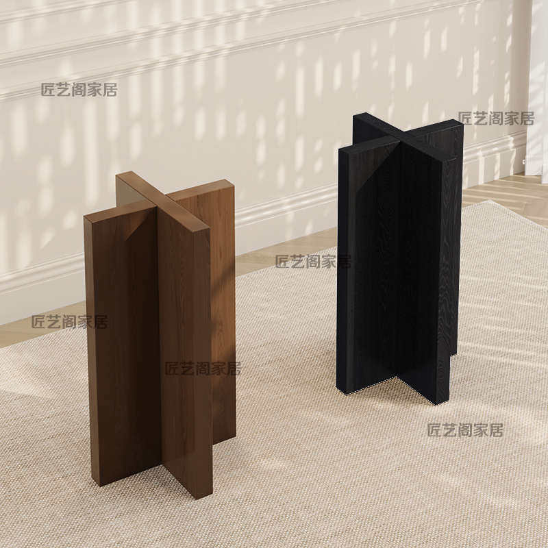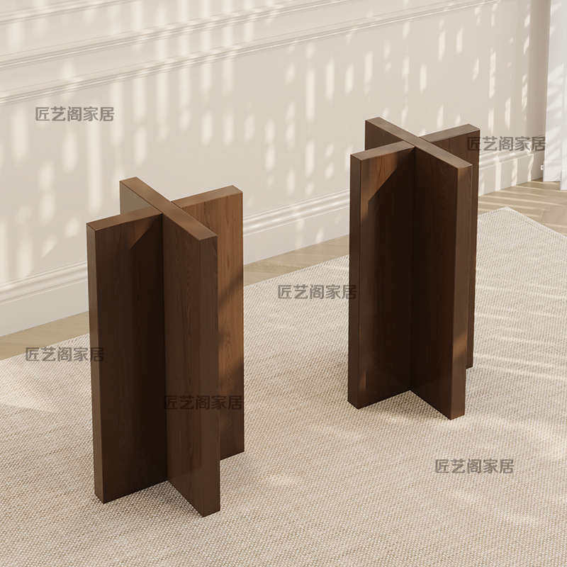 十字型原木桌腿支架黑色中古桌子腿椭圆餐桌桌脚支撑大理石底座