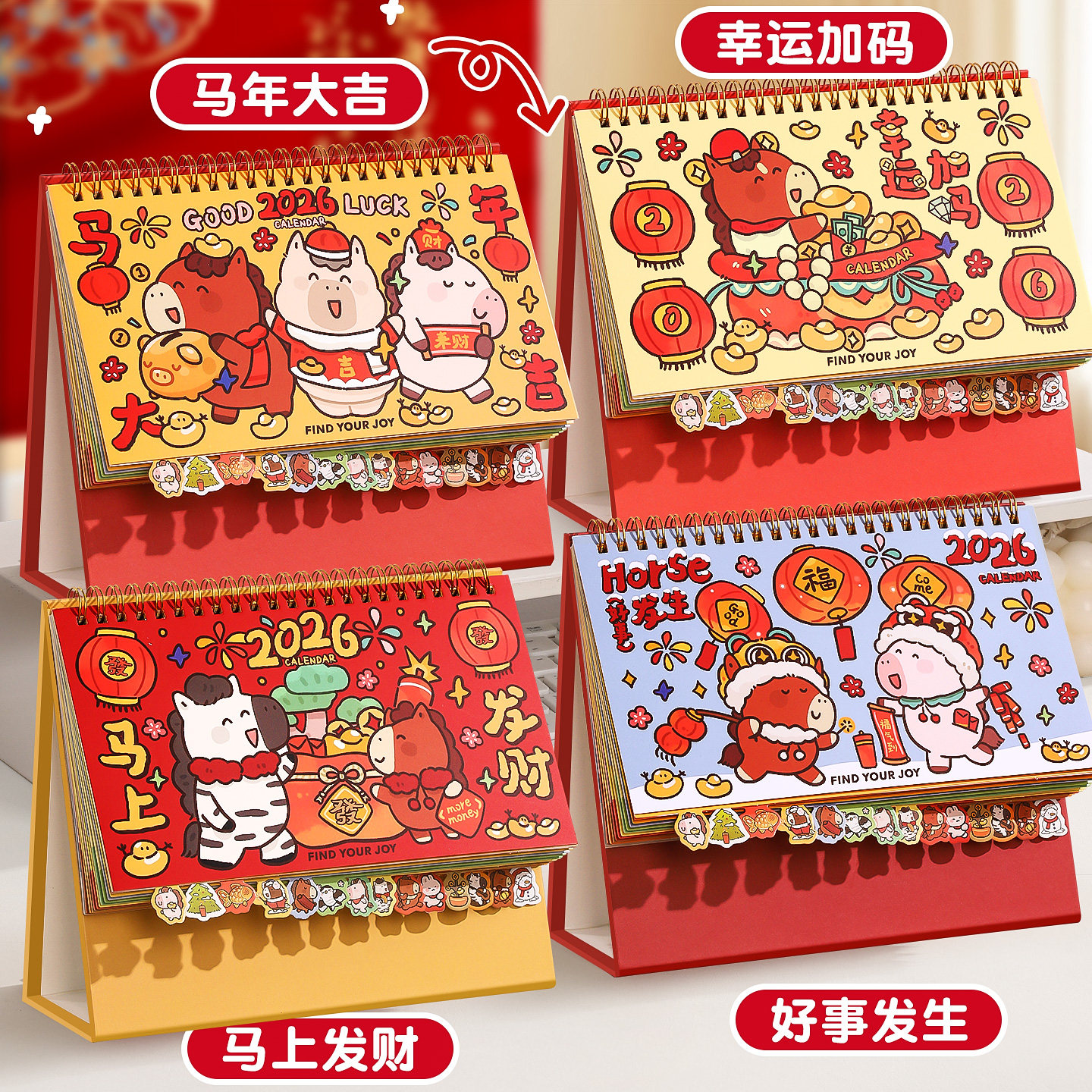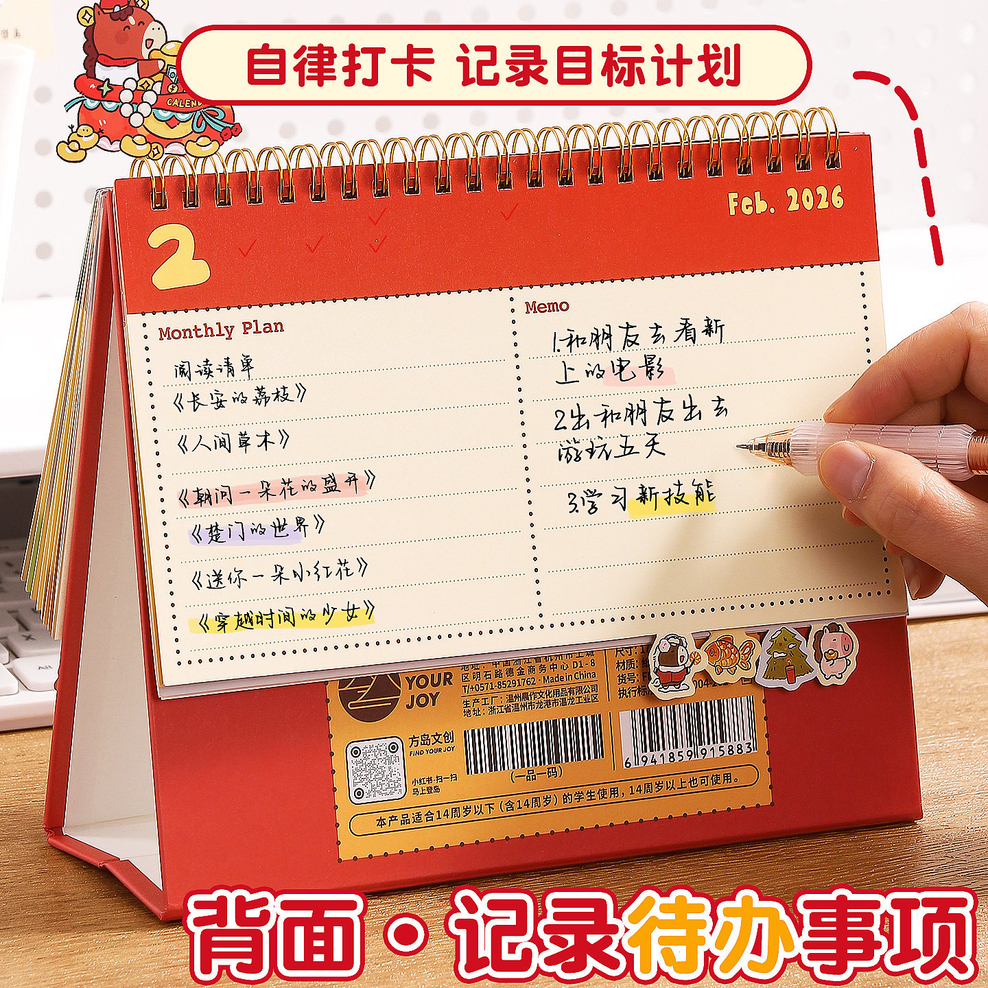 2026年新款台历创意卡通日历全年马年迷你小台历桌面摆件办公室学生每日计划表工作自律打卡记事mini计划月历