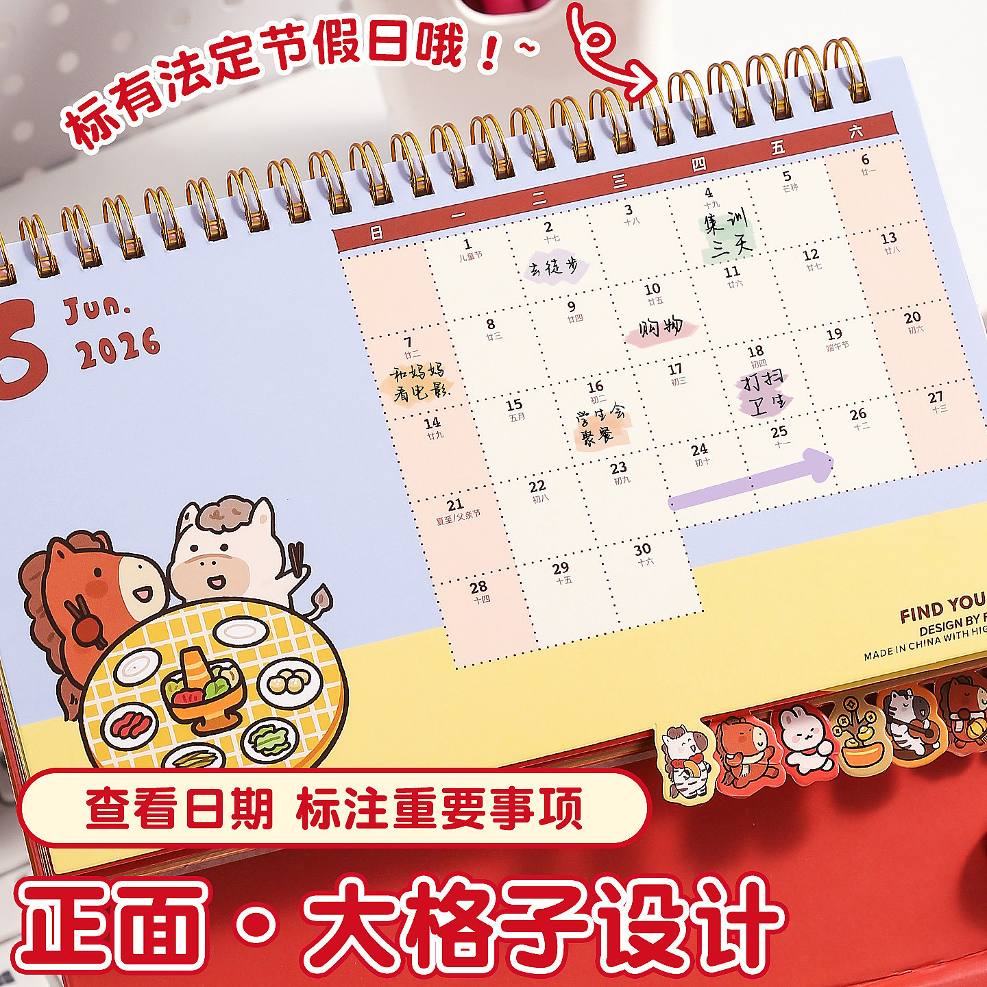 季左2026年韩式台历日历马年新款定制订制小卡月历桌面摆件网红卡通高颜值办公台历卡通可爱