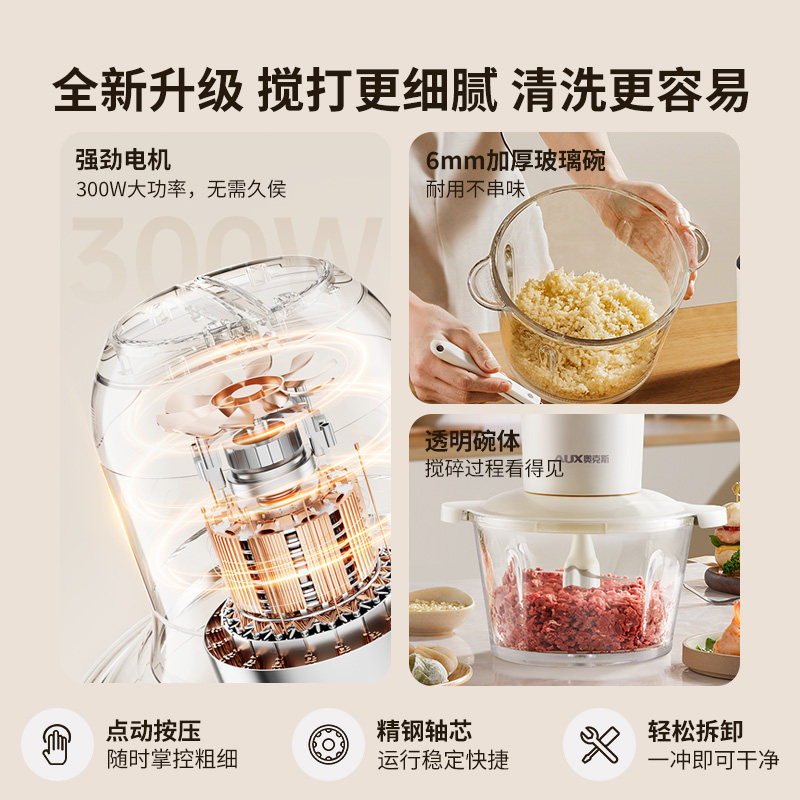 奥克斯绞肉机家用全自动料理机多功能小型电动辅食打碎搅拌烹饪机