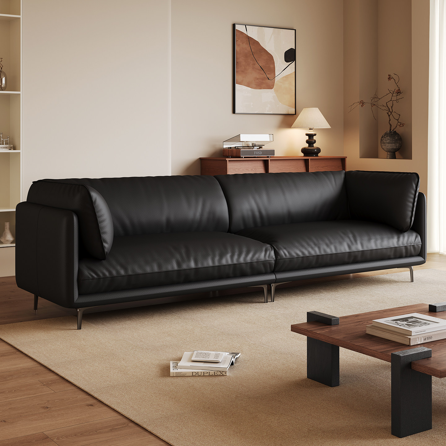 舒梵银河沙发/黑色纳帕厚牛皮沙发/中古包豪斯北欧极简直排小户型