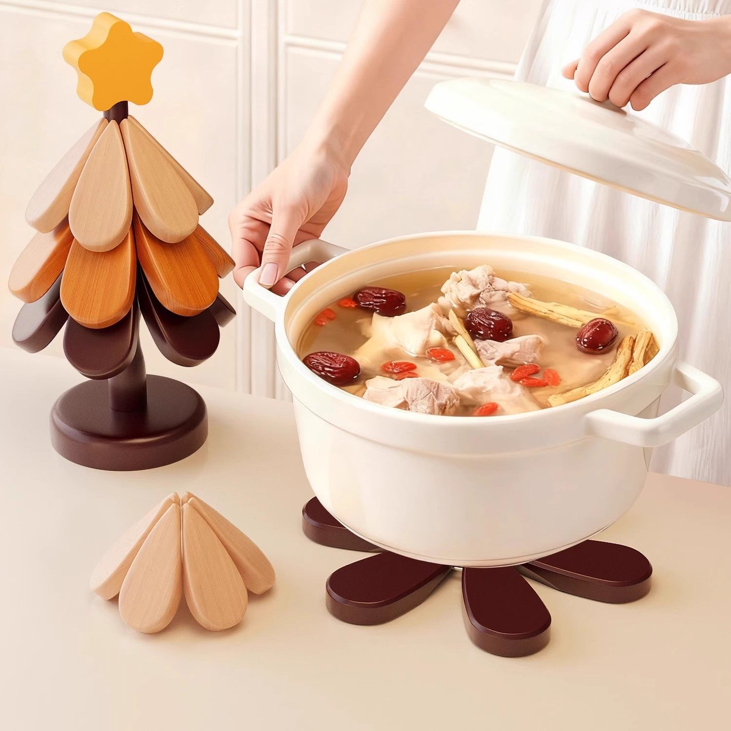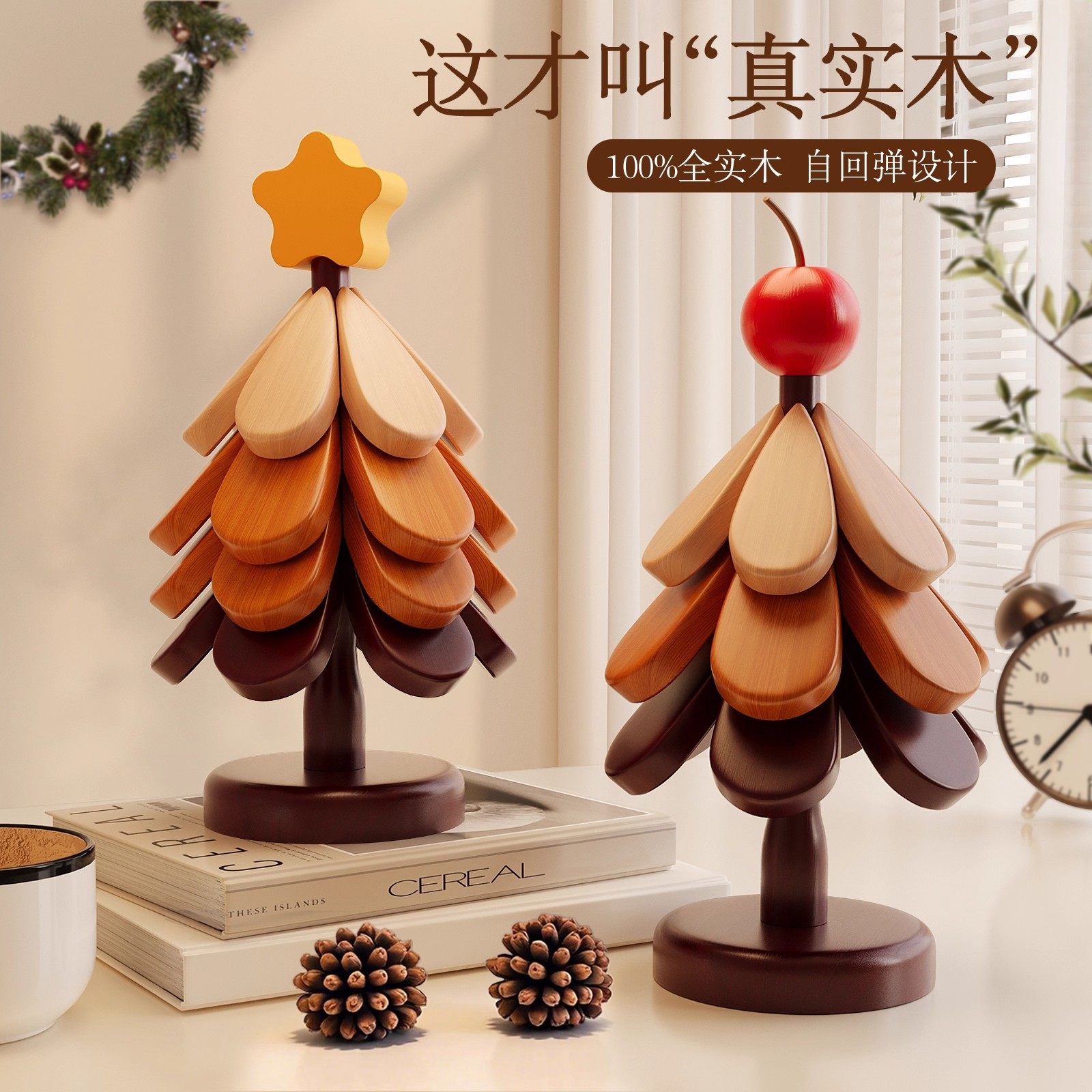 圣诞树隔热垫创意餐垫桌碗垫实木防烫耐高温锅垫餐边柜摆件家用