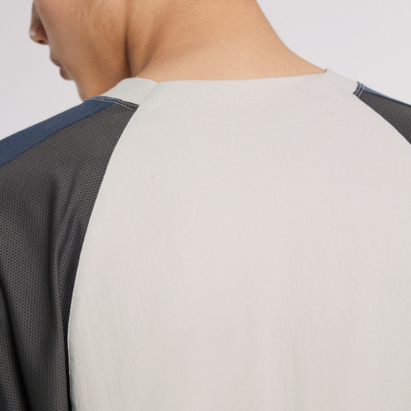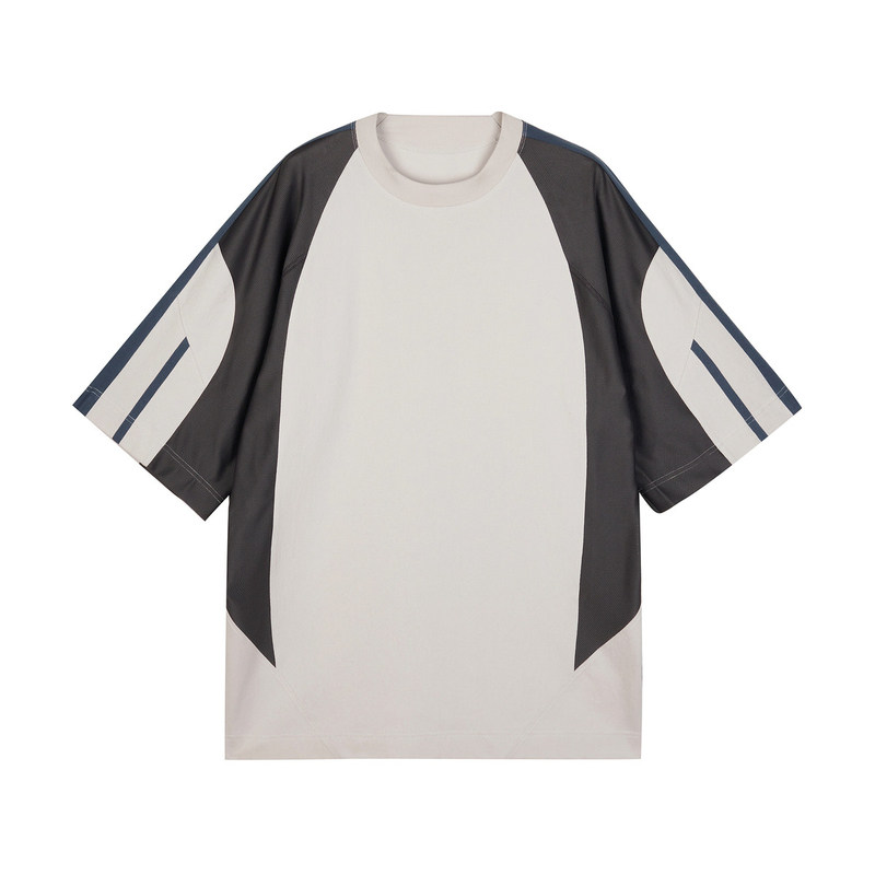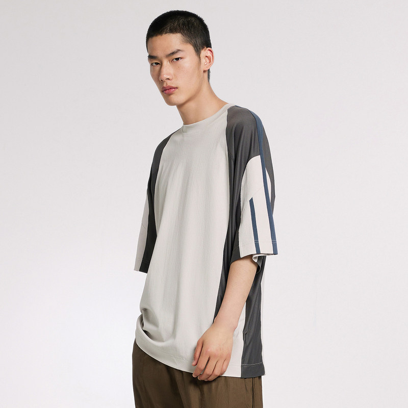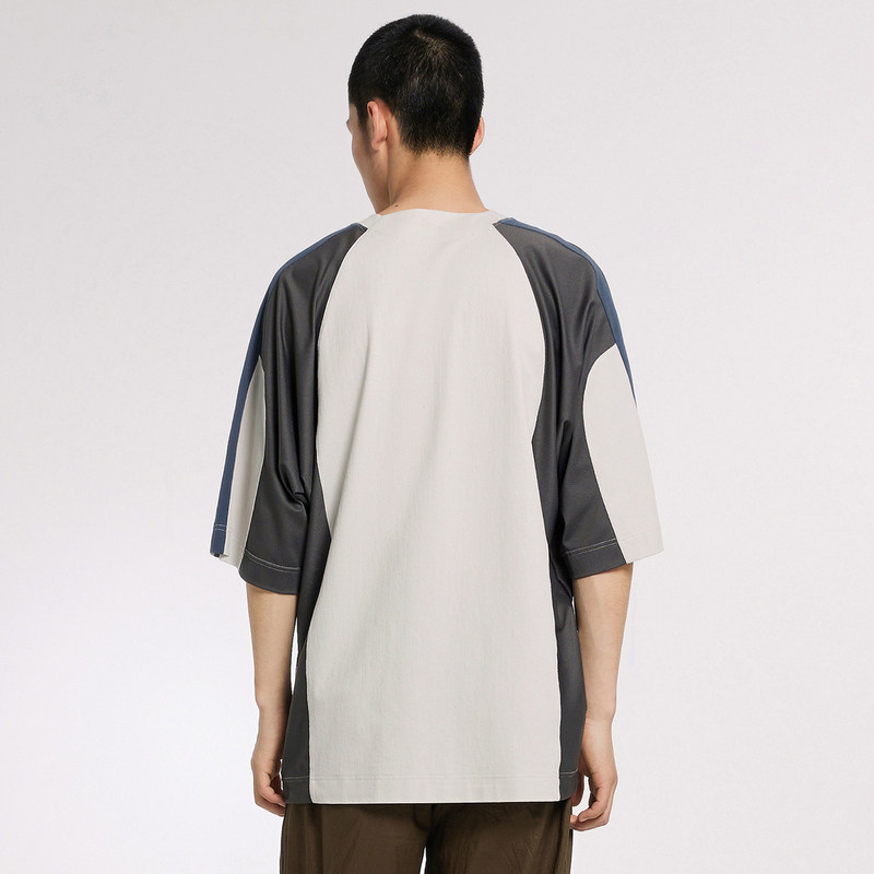 速写男装夏季新品短袖衬衣撞色拼接圆领上衣时尚设计通勤街头潮流