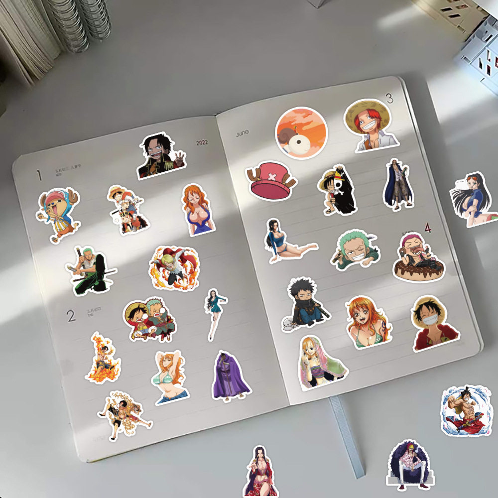 60张卡通日漫海贼王贴纸热血二次元路飞装饰手机壳笔记本防水贴画