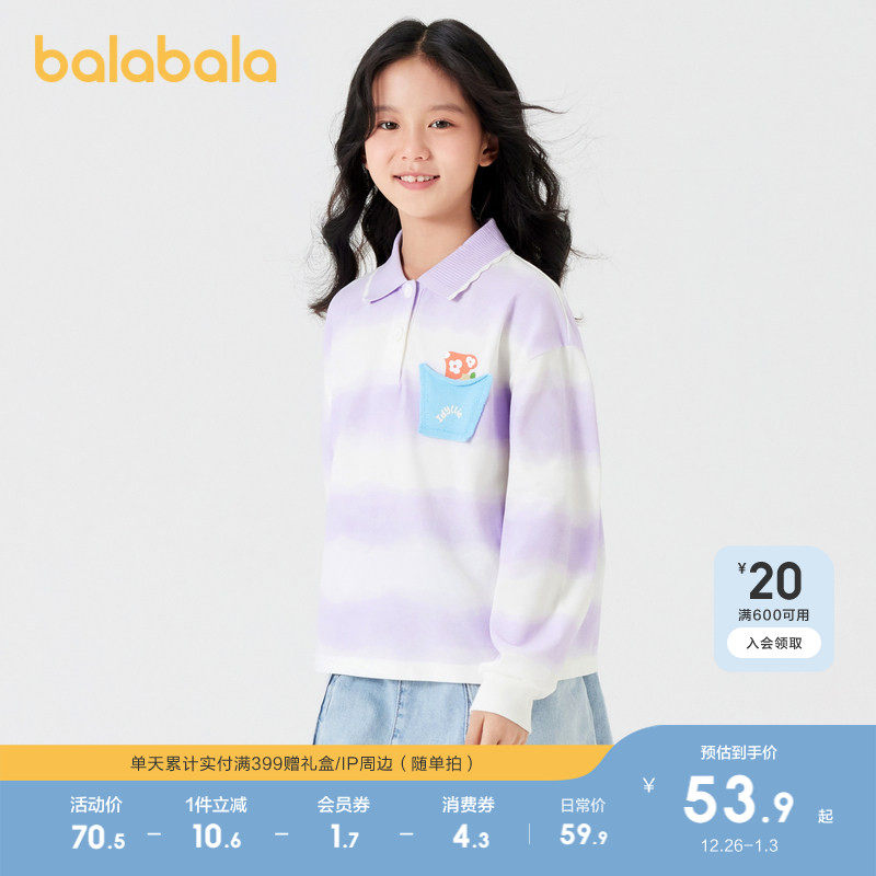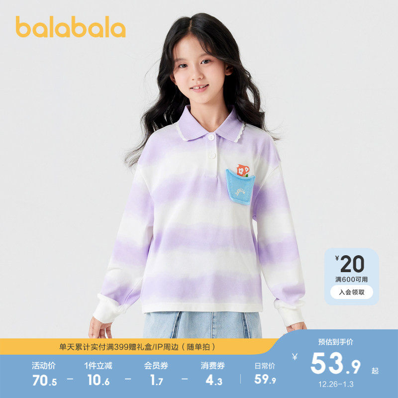 巴拉巴拉童装女童长袖t恤秋装上衣甜美撞色中大童时尚洋气套头衫