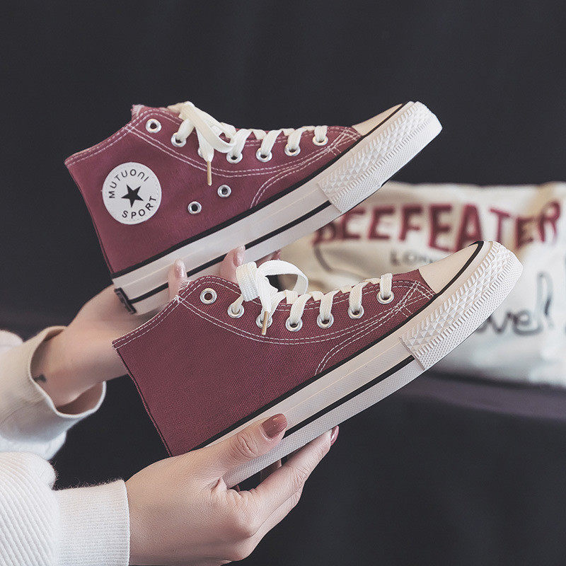 人本加绒高帮帆布鞋女2025秋冬学生平底休闲板鞋黑色韩版保暖棉鞋