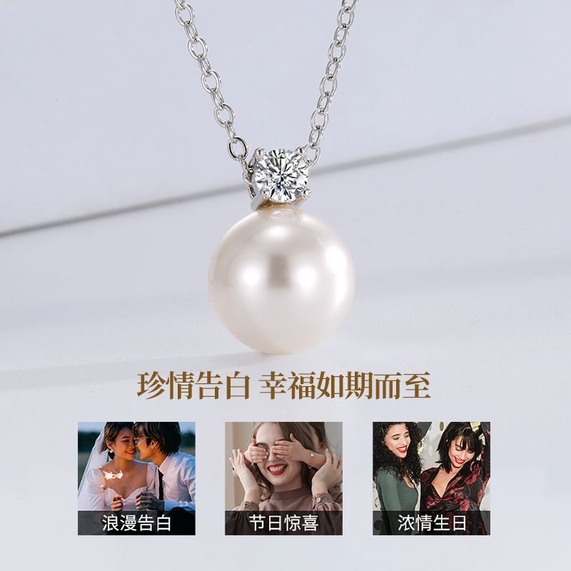 诸暨淡水珍珠吊坠正圆戴妃项链女高级王妃颈链珠宝白色轻奢精致