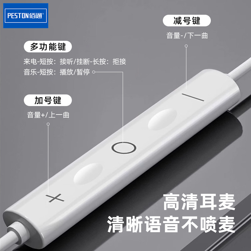 佰通半入耳式水晶盒type-c/3.5mm带麦线控通话听歌有线手机耳机