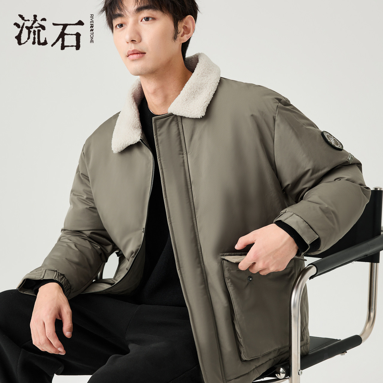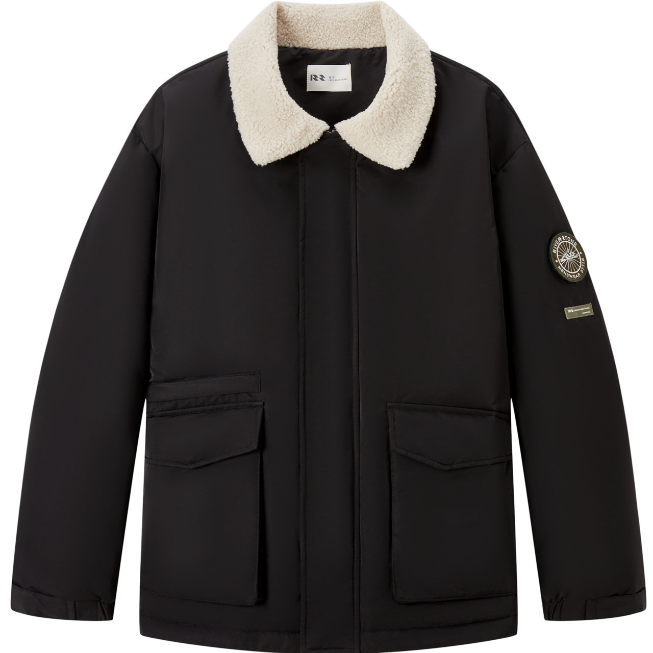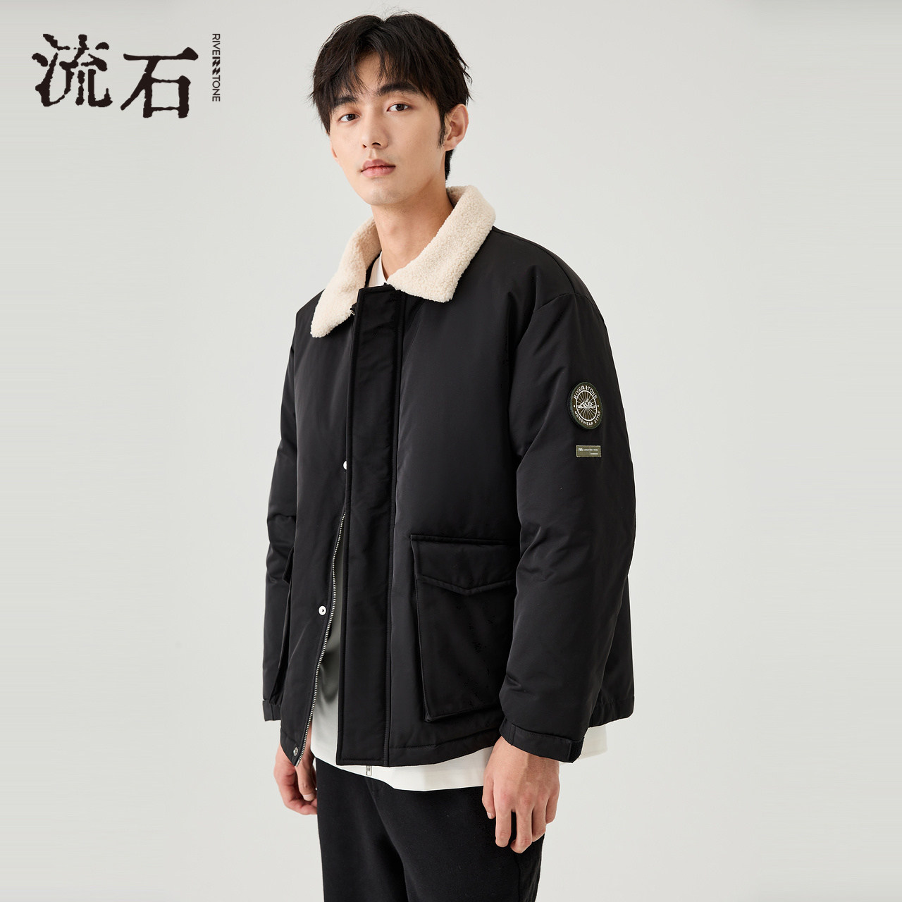 RS流石男装冬装短款羽绒服2025新款冬季男士户外徽章保暖工装外套
