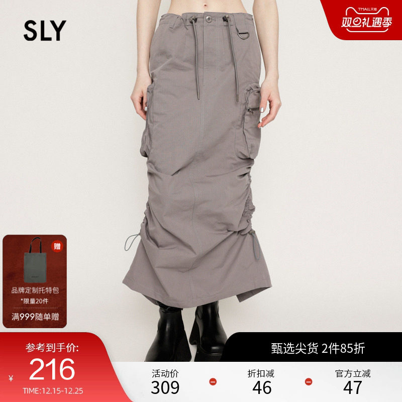 SLY 2024夏季新品低腰工装风抽绳抽褶扣环半身裙女038GAL31-6050