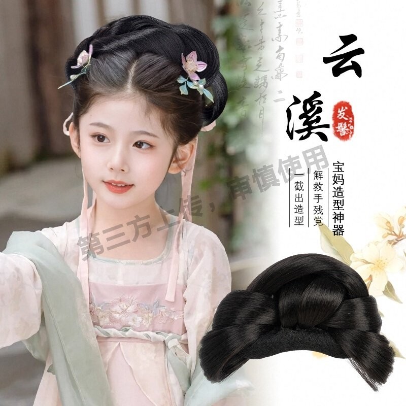 儿童汉服假发女童古风头饰古装全发丝发髻日常造型头顶盘发垫发包