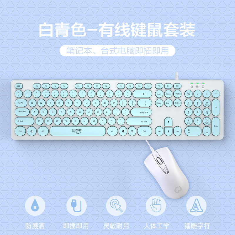 女生键盘办公静音机械手感鼠标套装游戏朋克巧克力紫色键鼠套件