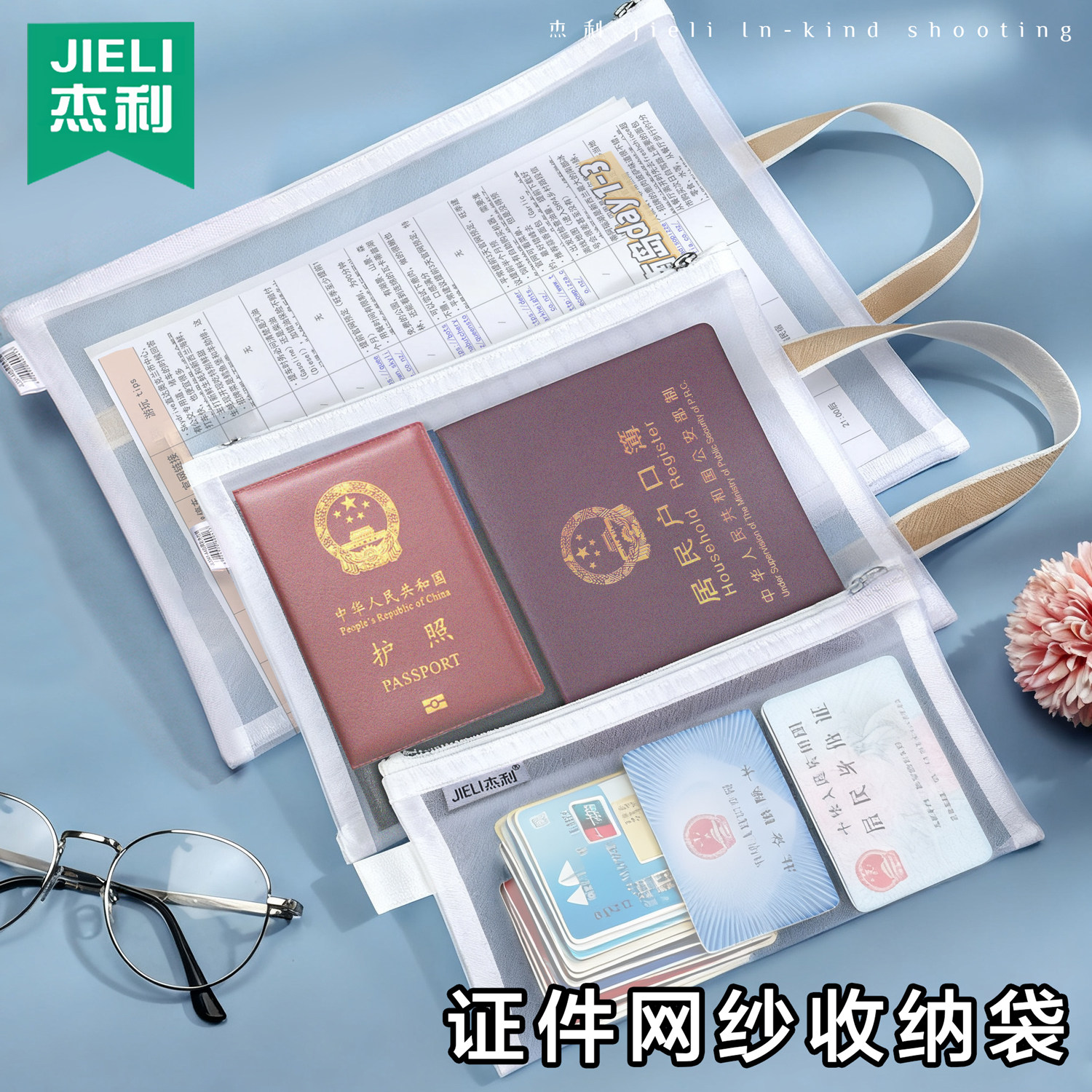 杰利护照收纳包外出旅游便携随身包登机牌钱包袋大容量证件一体卡包保护套a4文件证件袋户口簿透明收纳袋